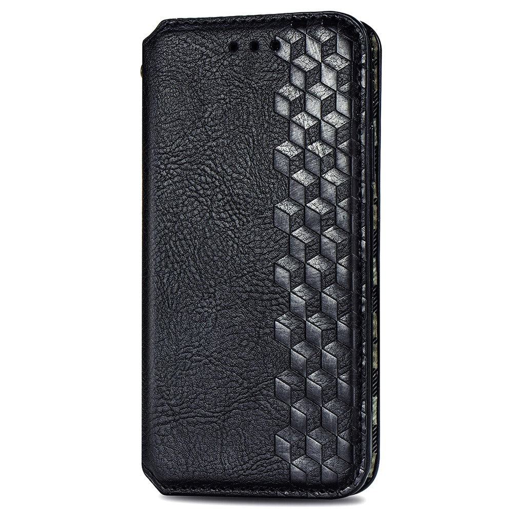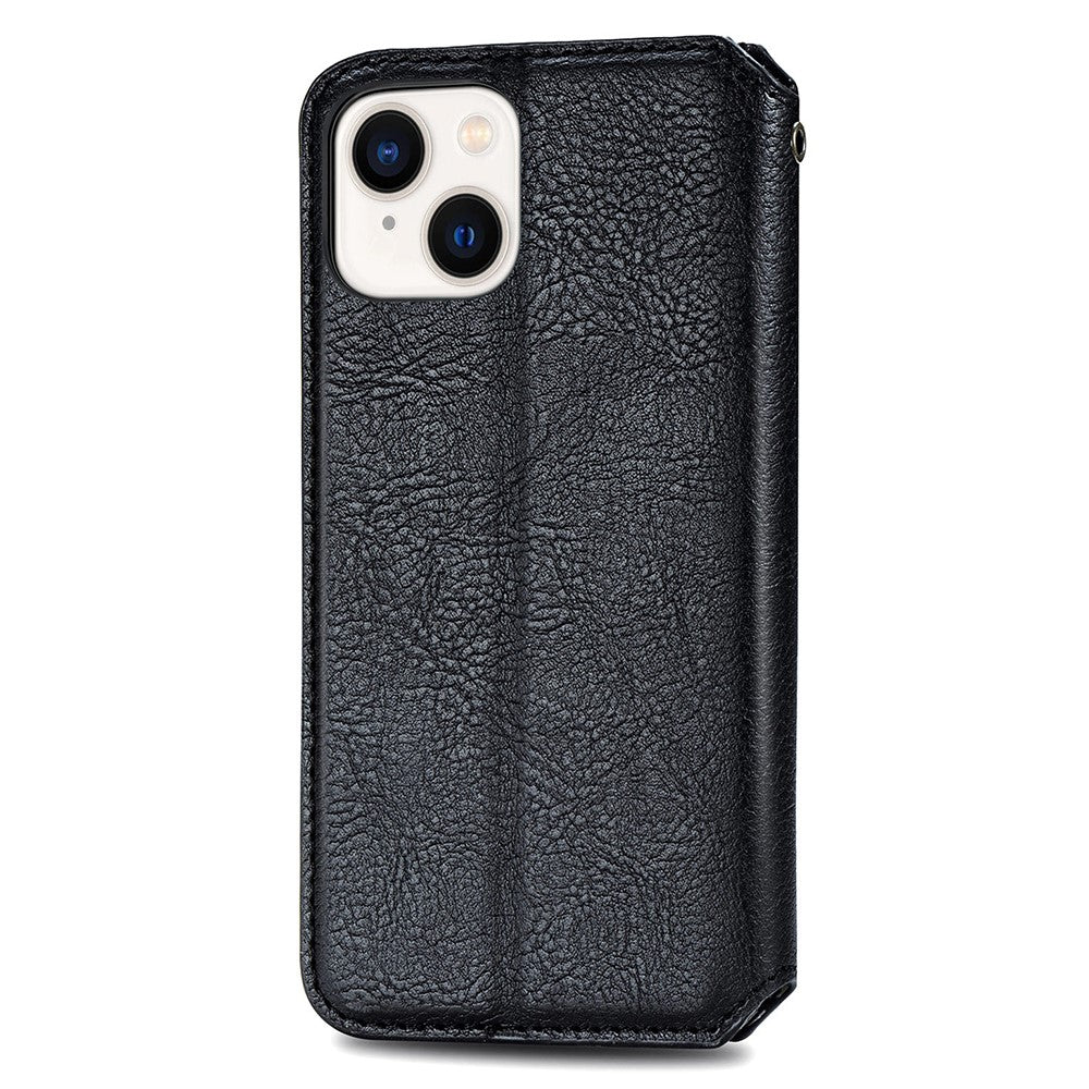 Leather case with a stylish rhombus imprint for iPhone 15 Plus - Black