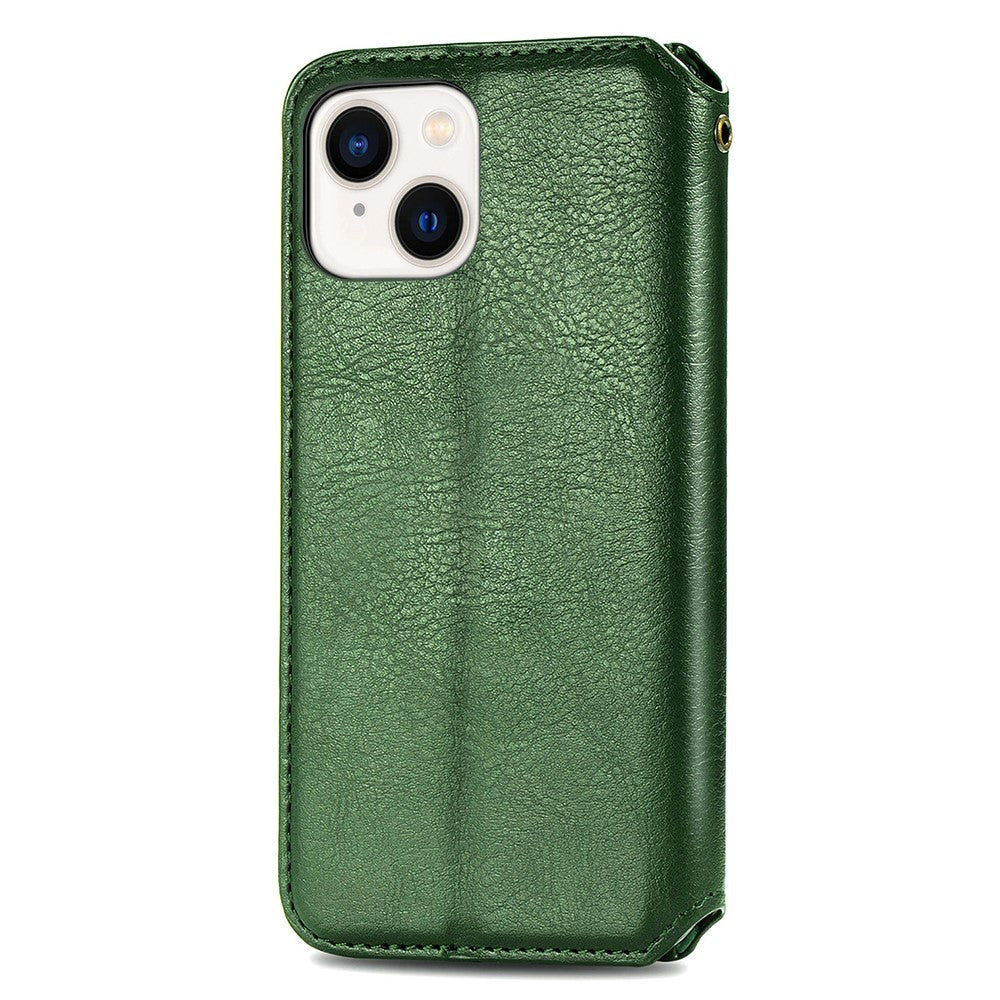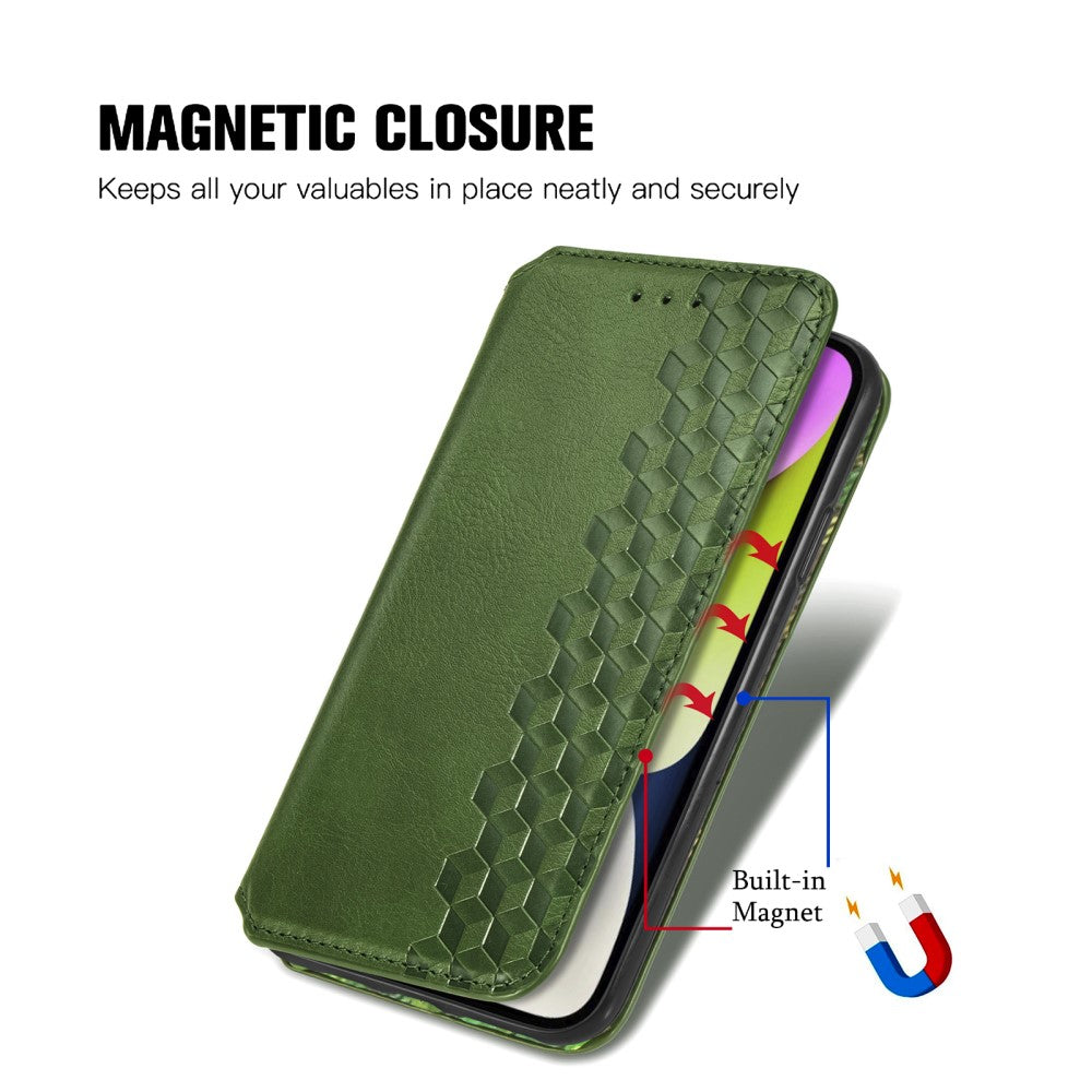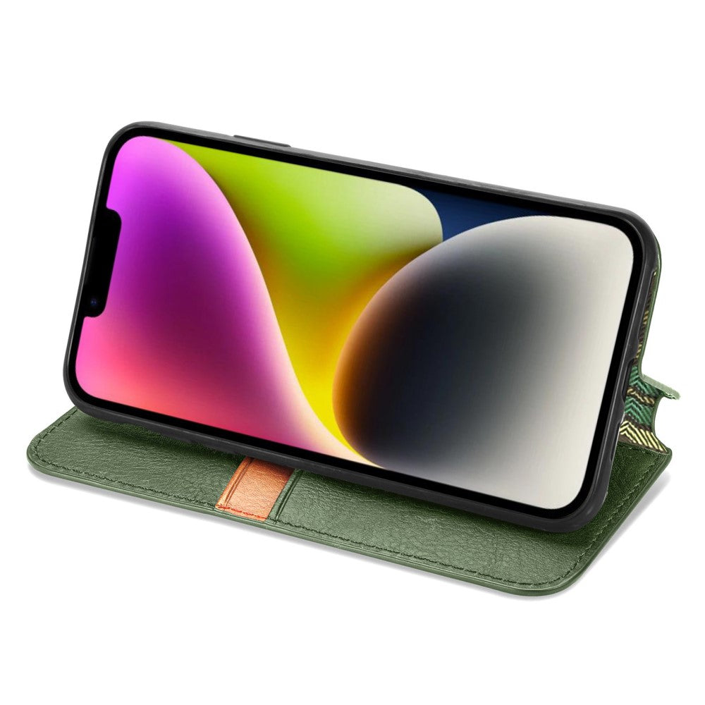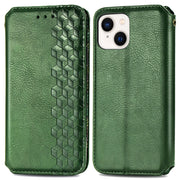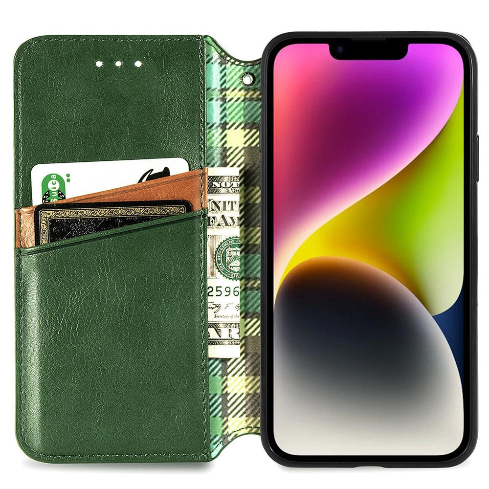 Leather case with a stylish rhombus imprint for iPhone 15 Plus - Green