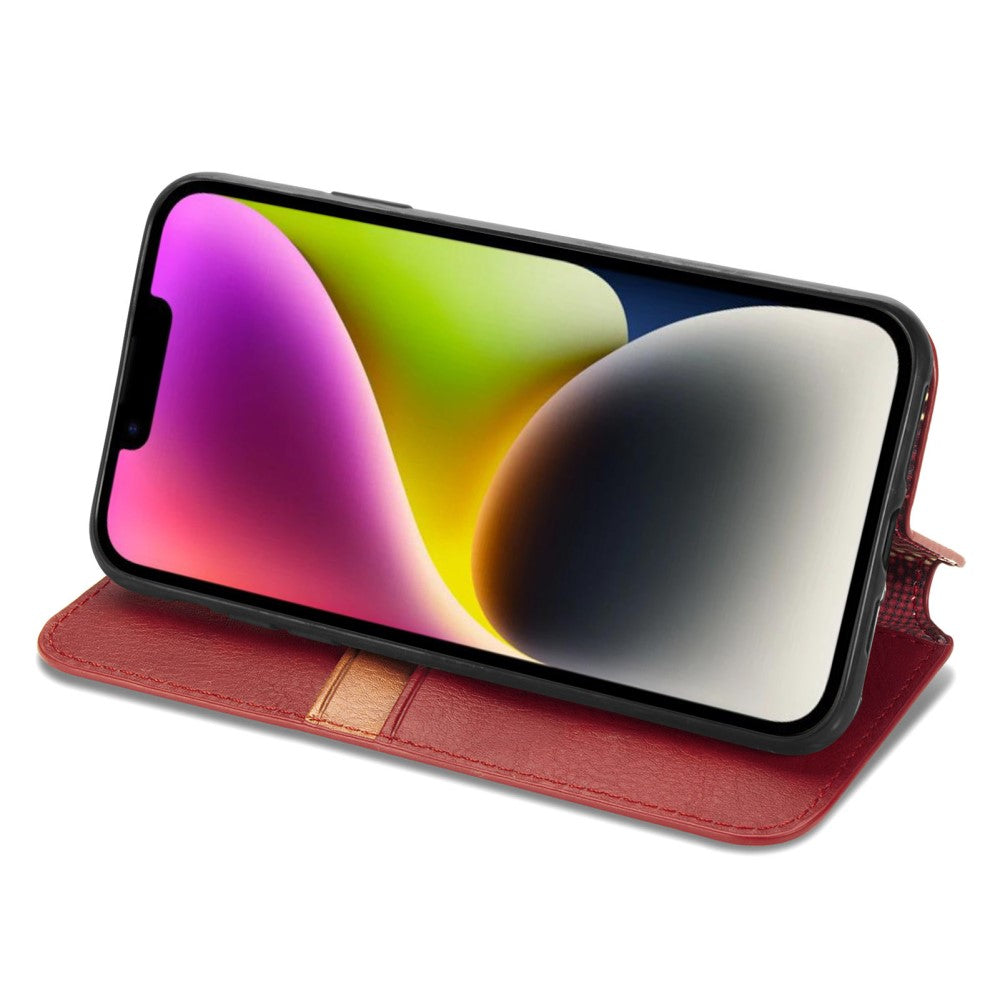 Leather case with a stylish rhombus imprint for iPhone 15 Plus - Red