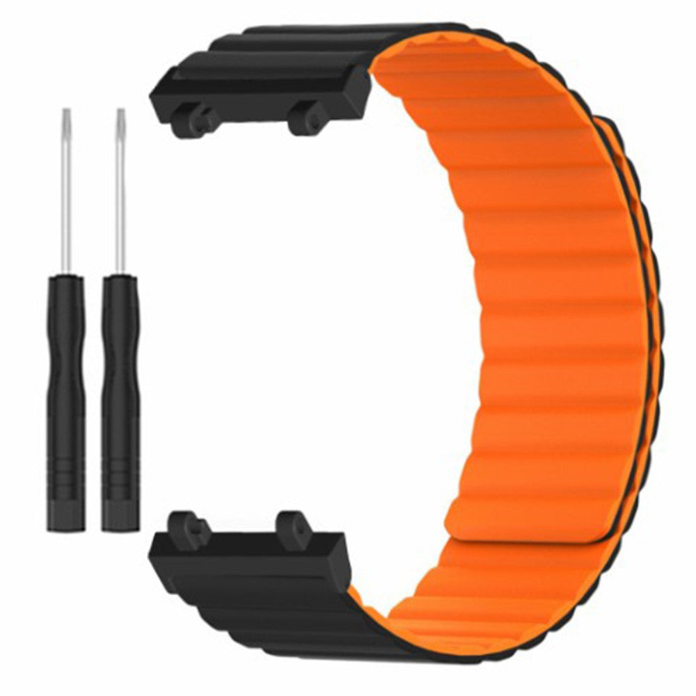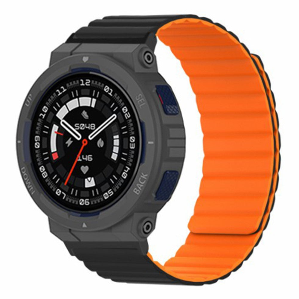 Magnetyczny silikonowy pasek do zegarka Huami Amazfit Active Edge (A2212) - Czarny + Pomarańczowy