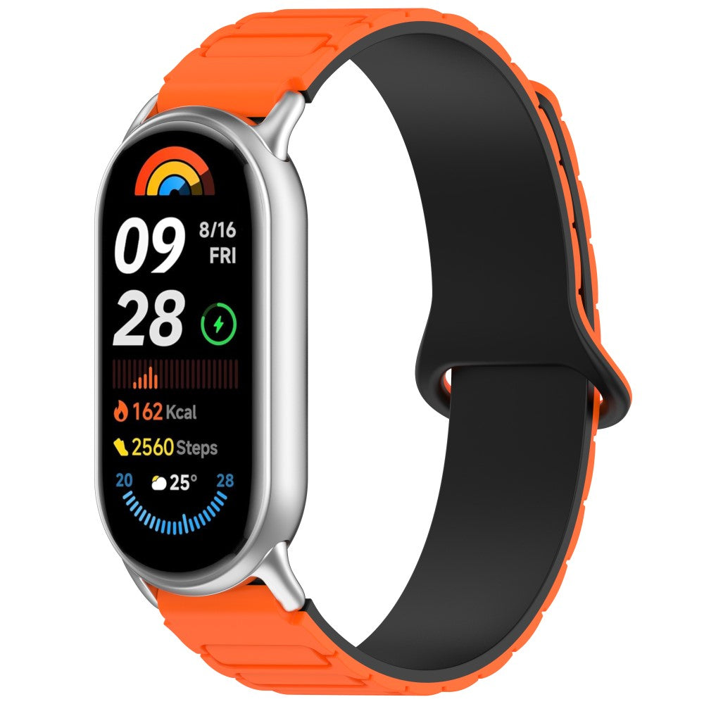 Magnetyczny silikonowy pasek Xiaomi Smart Band 9 NFC / 9 / 8 NFC / 8 Wymienna opaska na rękę ze złączami - Pomarańczowy + Czarny