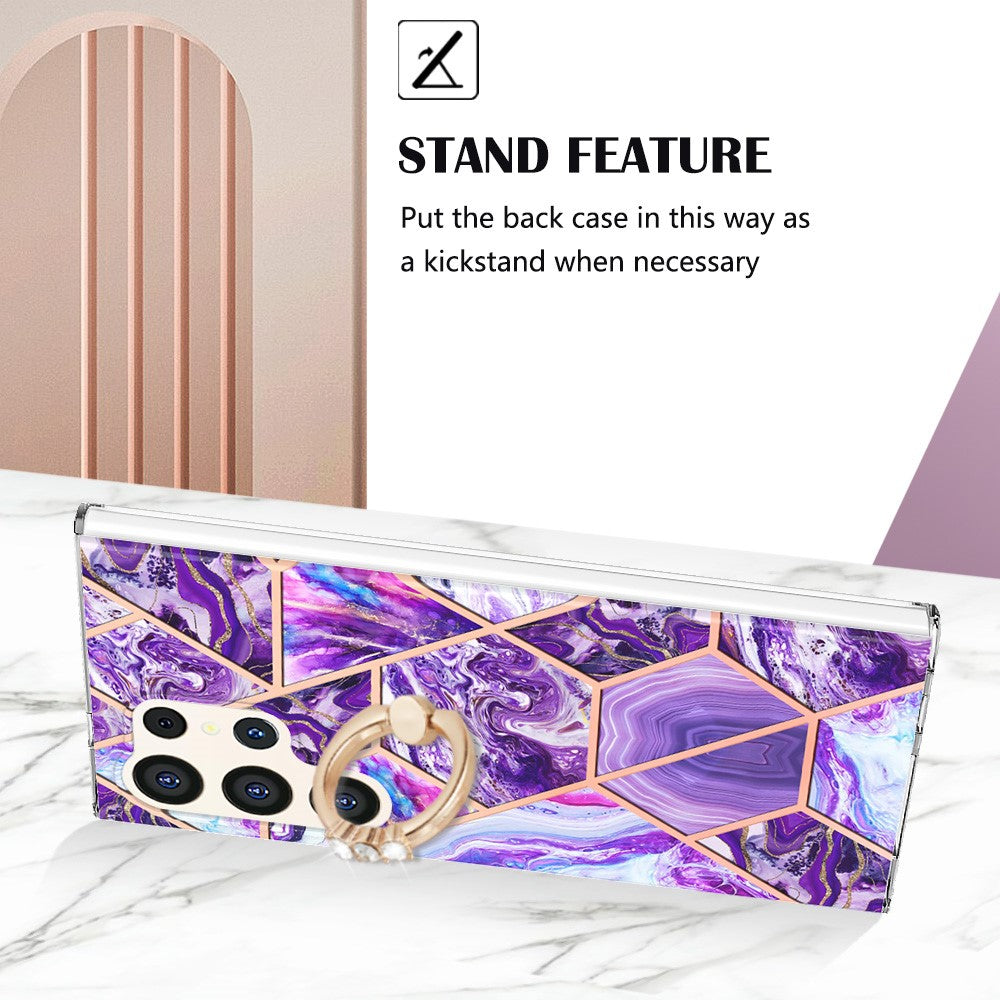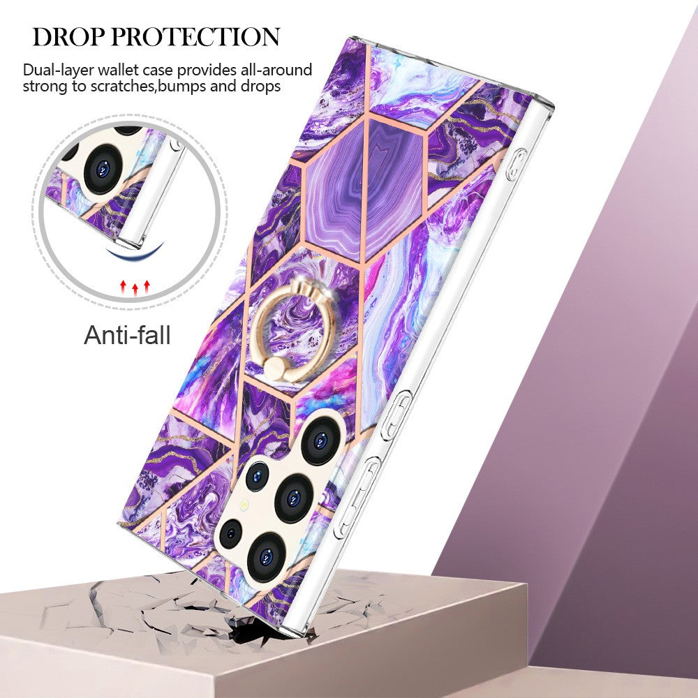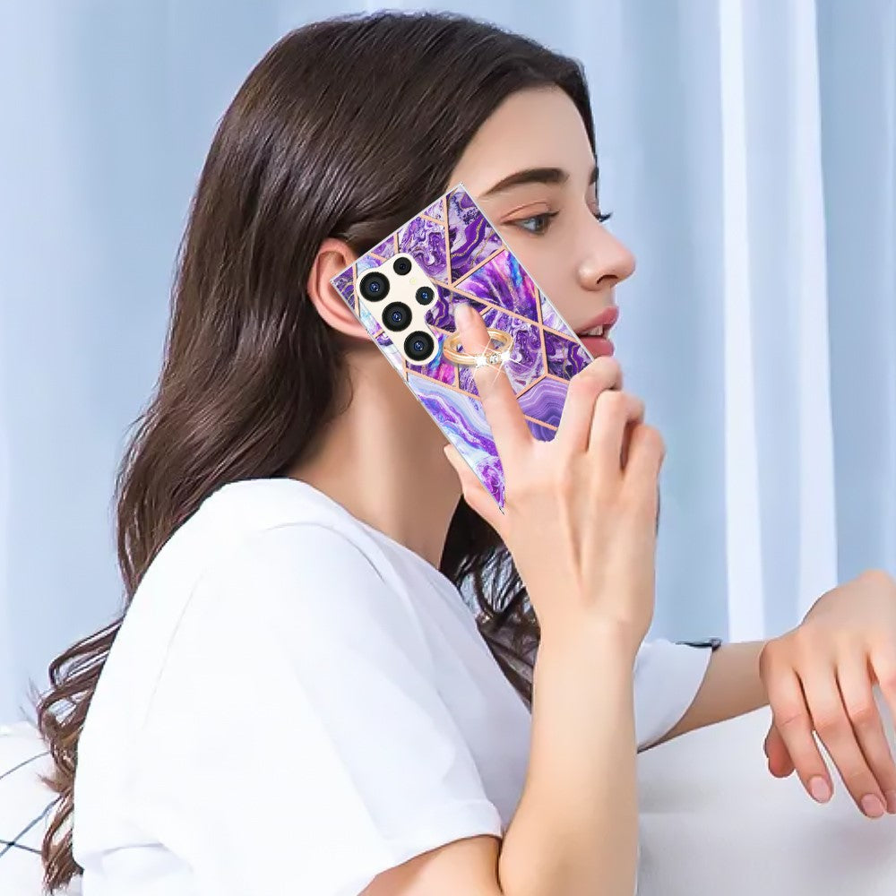 Marmurkowy pokrowiec Samsung Galaxy S24 Ultra z uchwytem na pierścień - Fioletowy