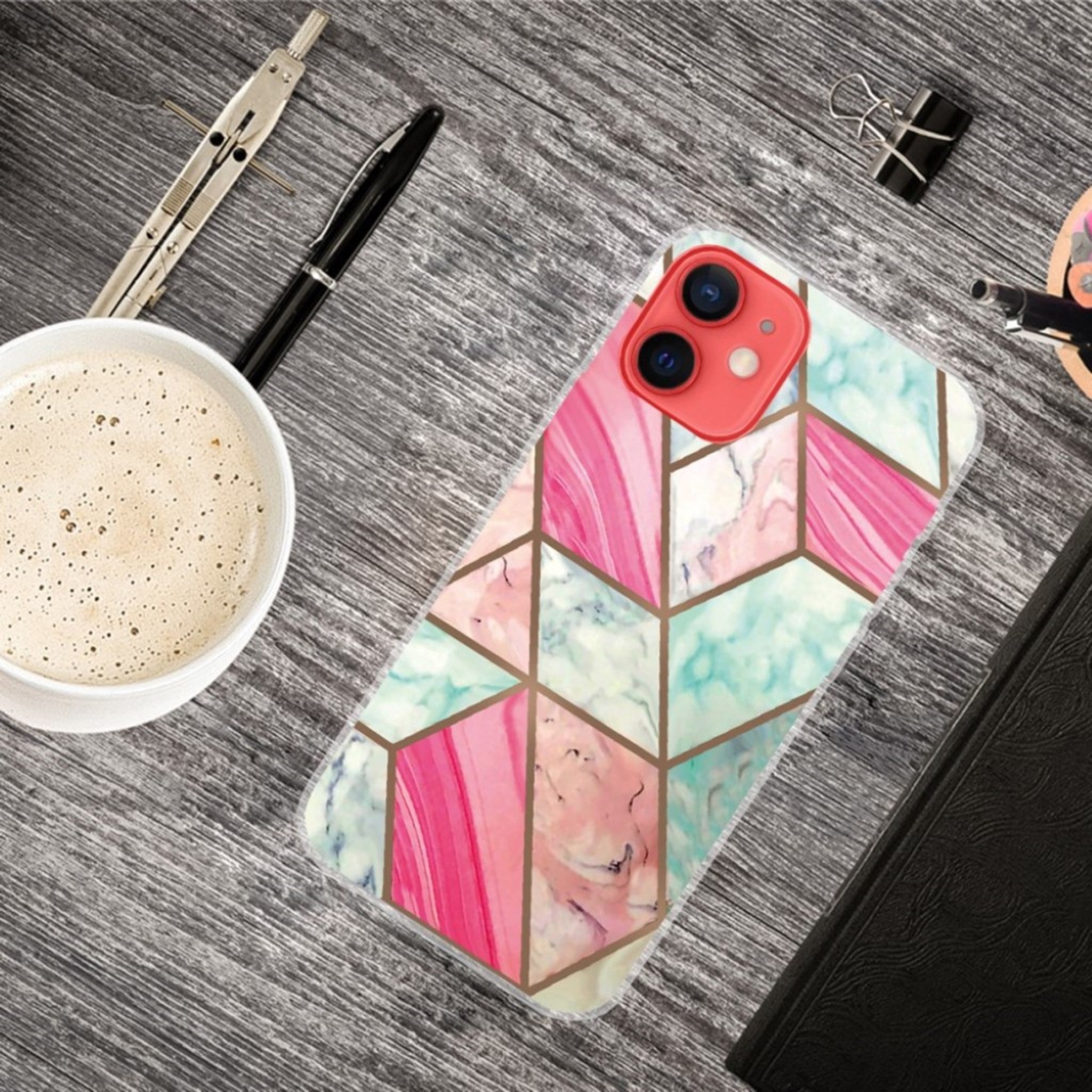 Marmurowe etui na iPhone'a 13 - Kolorowe Marmurowe Płytki