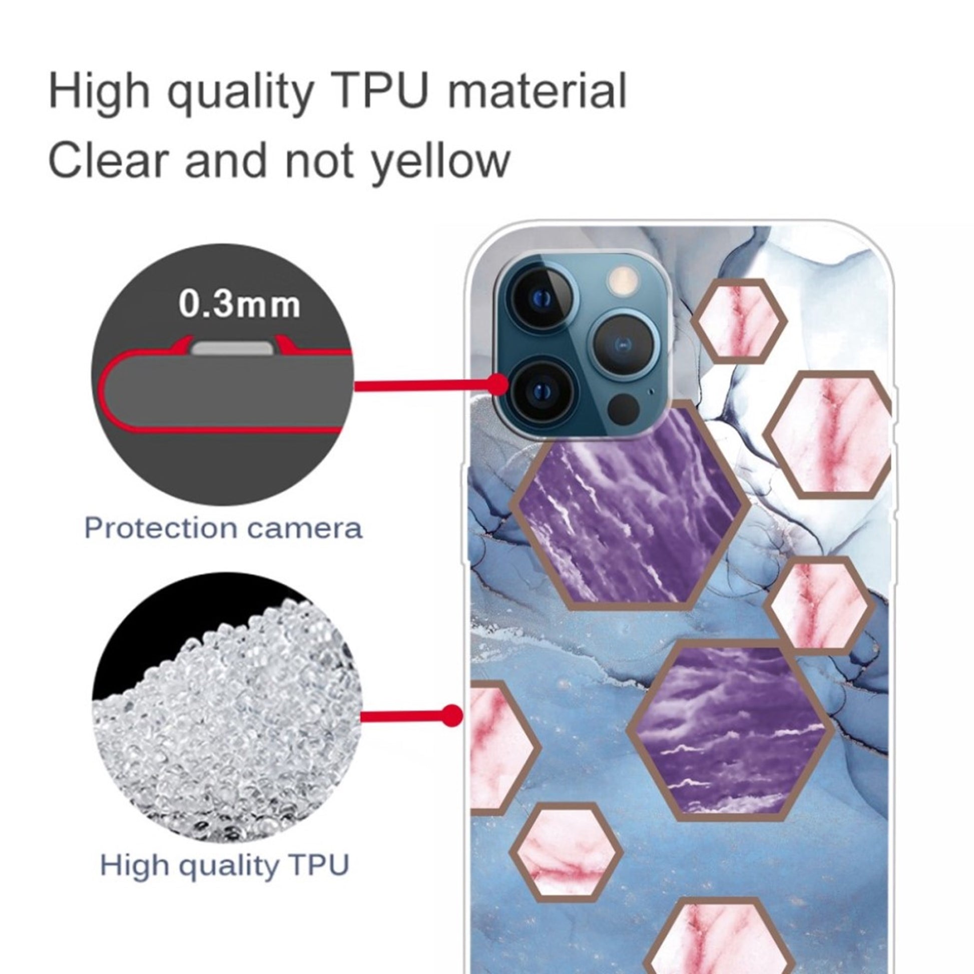 Marmurowe etui na iPhone'a 13 Pro - Sześciokątne Fragmenty W Kolorze Niebieskim