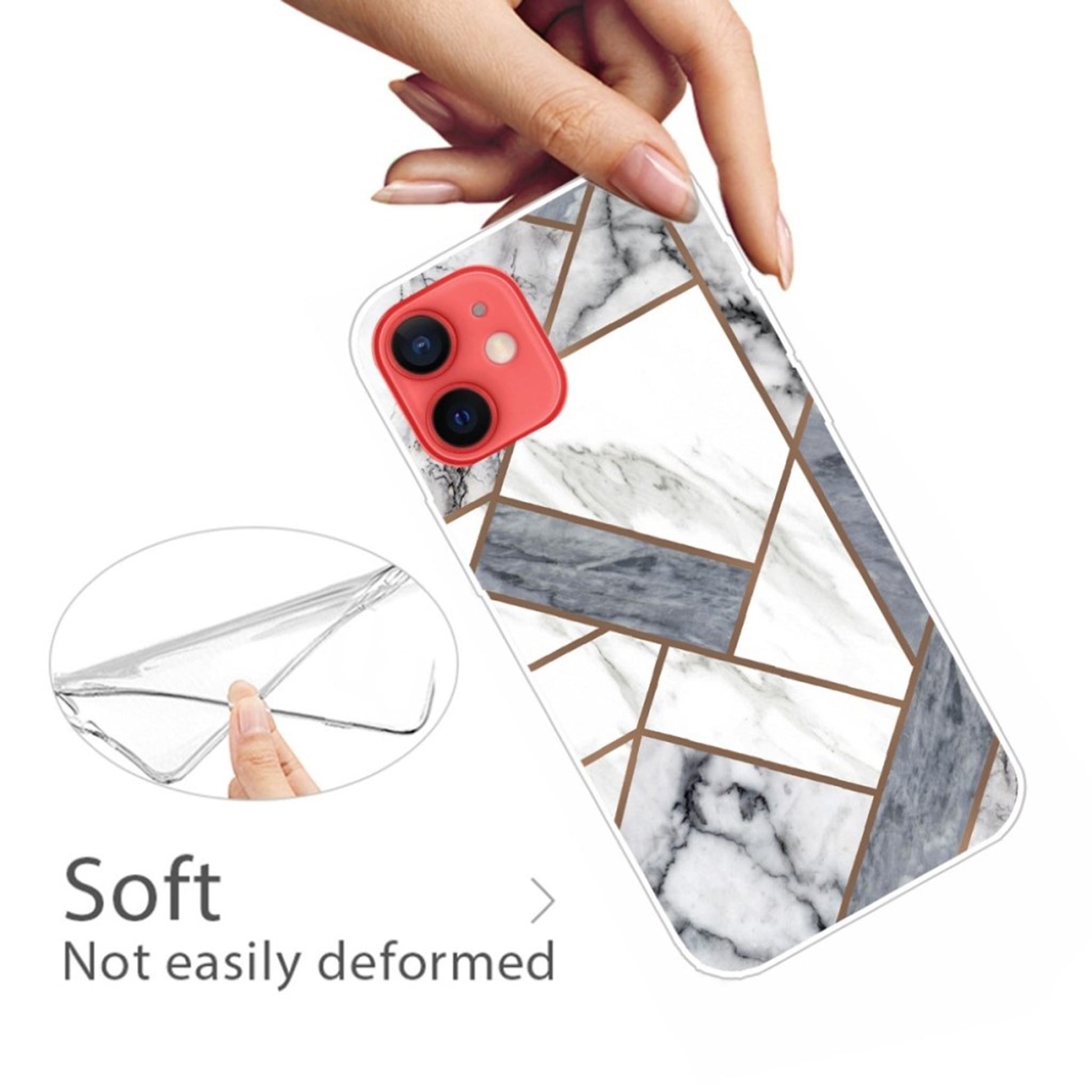 Marmurowe etui na iPhone'a 13 - Szare / Białe Marmurowe Płytki