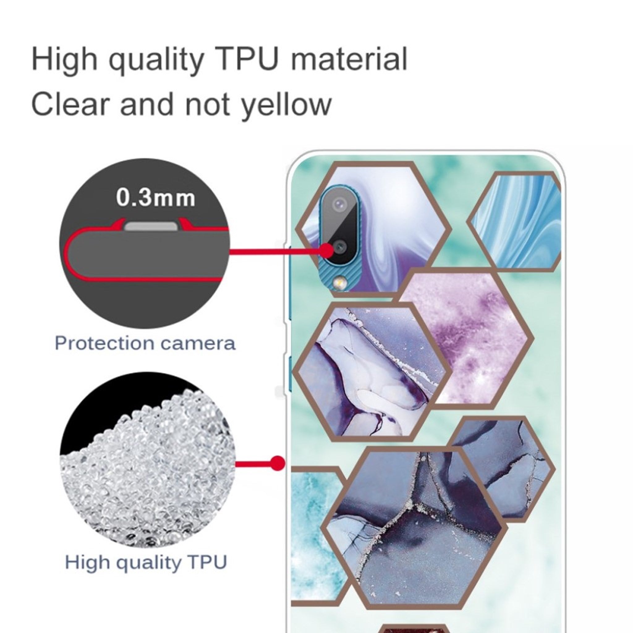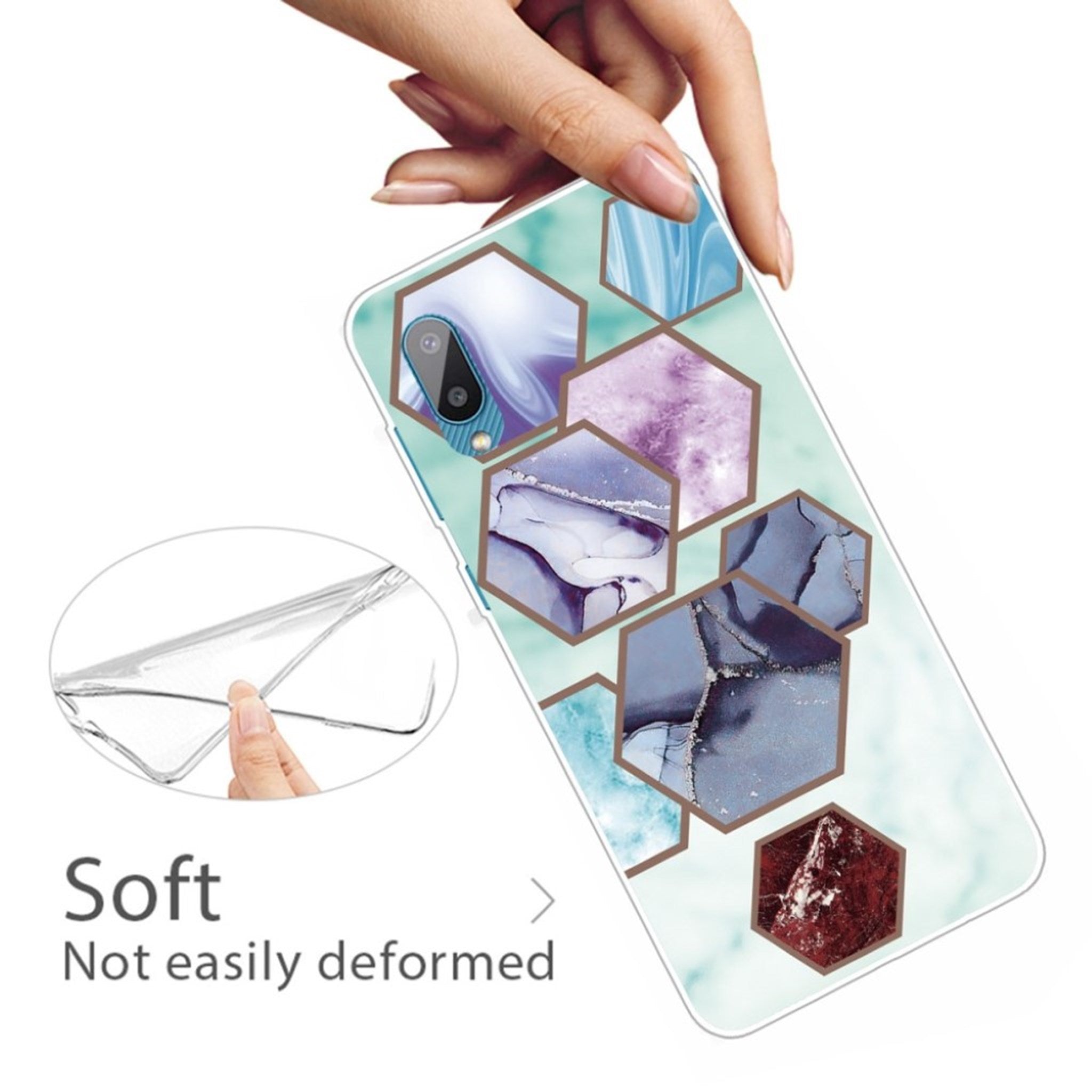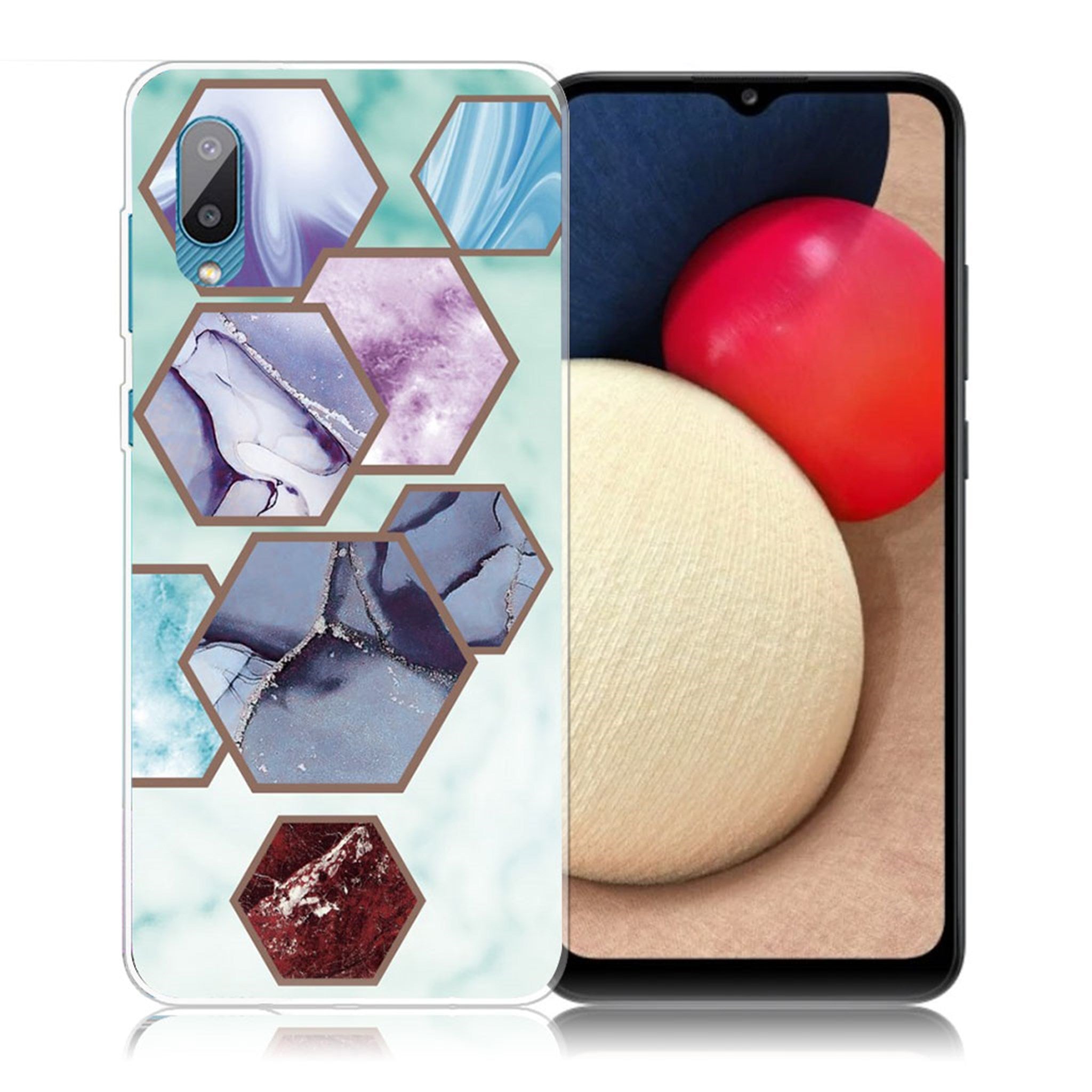 Marmurowe etui Samsung Galaxy M02 / A02 - Sześciokątne Fragmenty W Kolorze Niebieskim