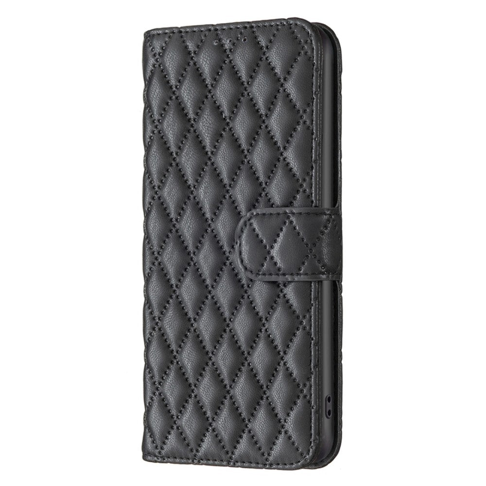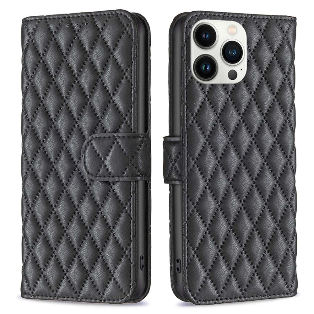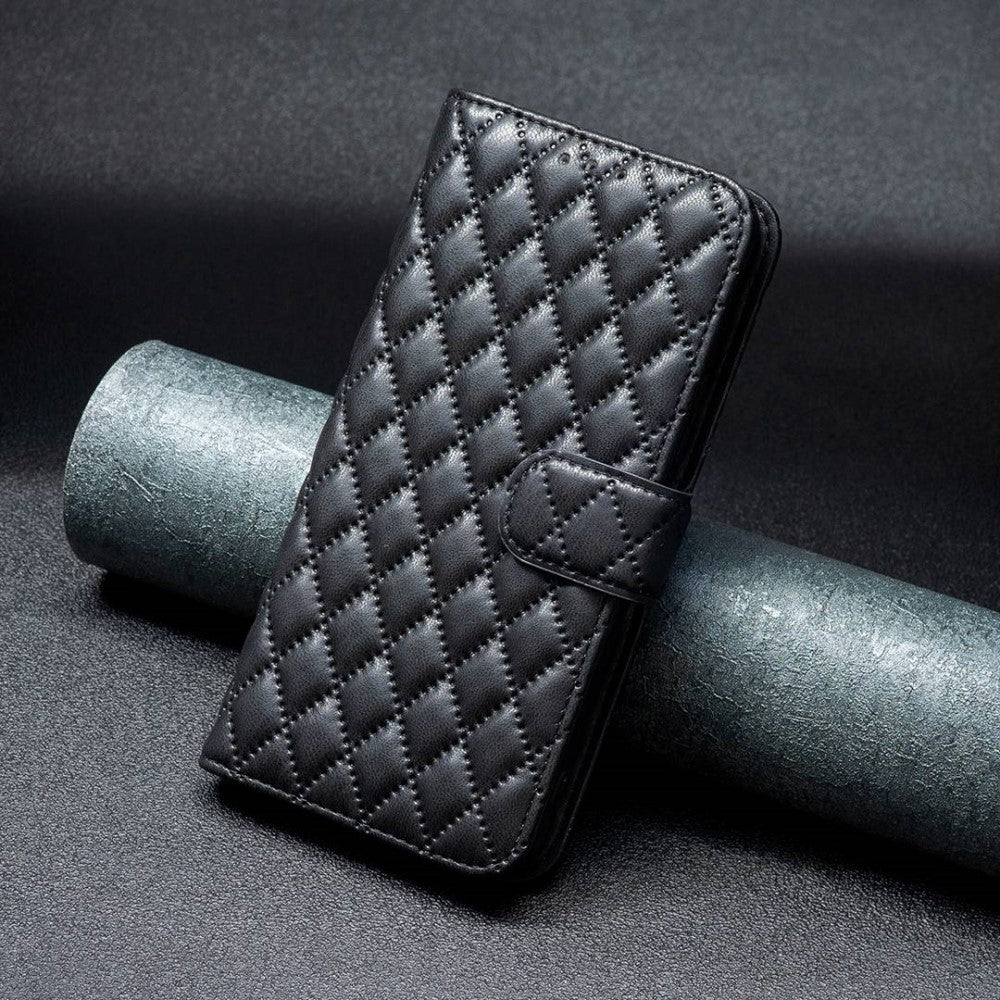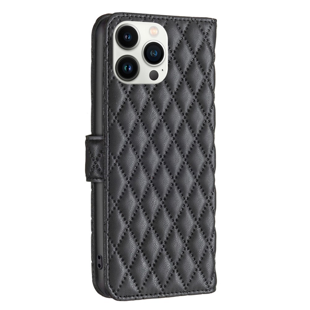 Matowe etui z klapką z wzorem rombu do iPhone'a 13 Pro Max - Czarne