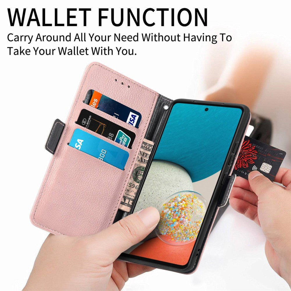 Miękkie skórzane etui z motywem kwiatowym dla Samsung Galaxy A33 5G - Różowe Złoto