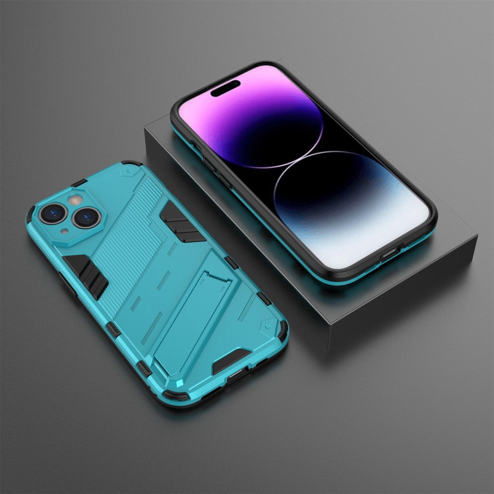 Odporna na wstrząsy hybrydowa obudowa z nowoczesnym akcentem dla iPhone'a 15 Plus - Baby Blue