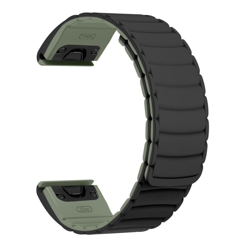 Pasek do zegarka 26 mm Garmin Fenix 8 51 mm / Enduro 3 / Enduro 2 Uniwersalny dwukolorowy magnetyczny silikonowy pasek do zegarka - Czarny + Jasnozielony