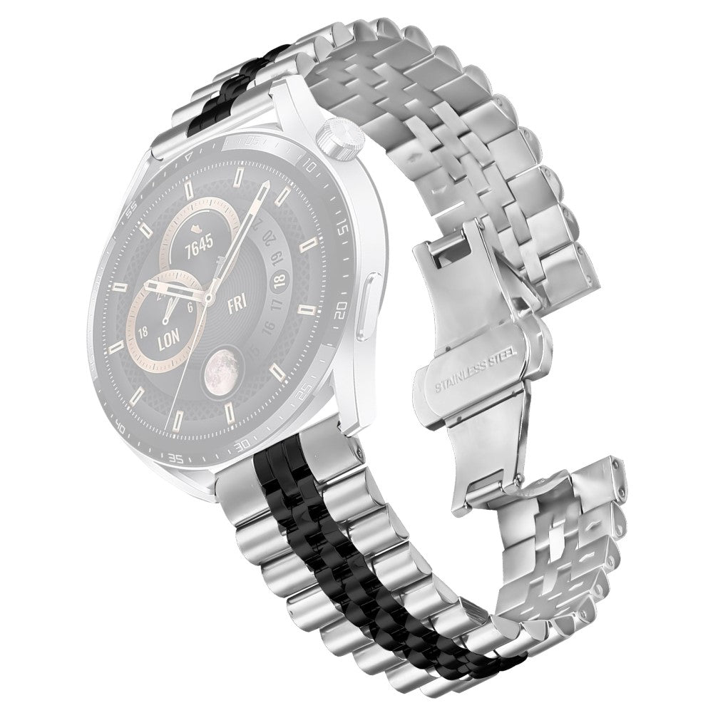 Pasek do zegarka Honor MagicWatch 2 46 mm z zapięciem motylkowym ze stali nierdzewnej i 5 koralikami - Srebrny + Czarny
