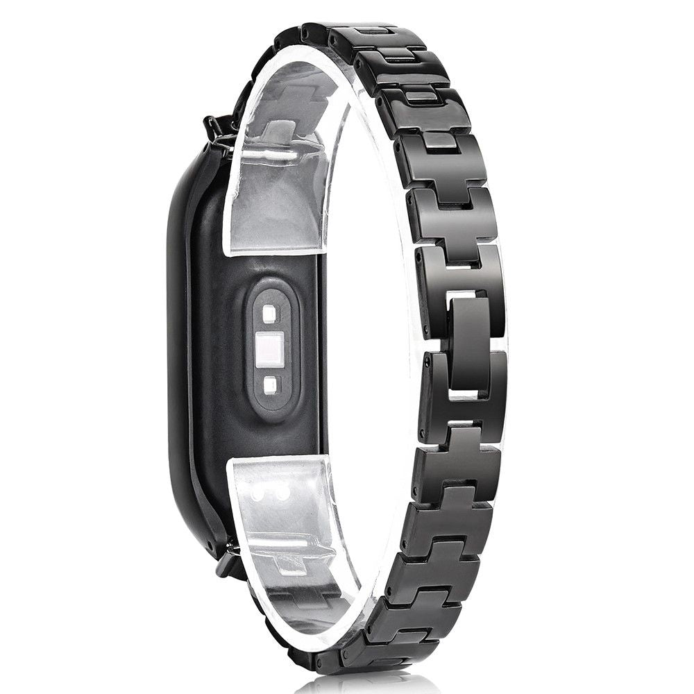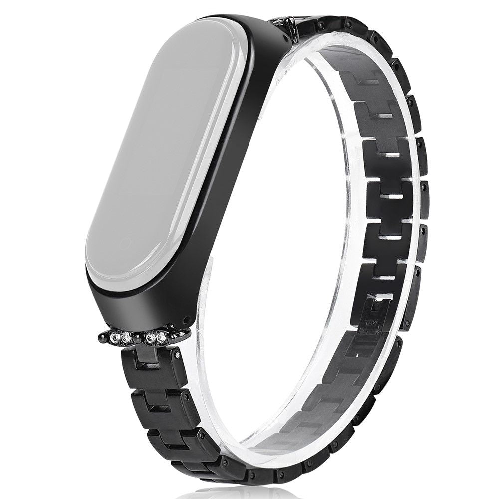 Pasek do zegarka Xiaomi Mi Smart Band 6 / 5 ze stali nierdzewnej z ozdobnymi kryształkami - Czarny