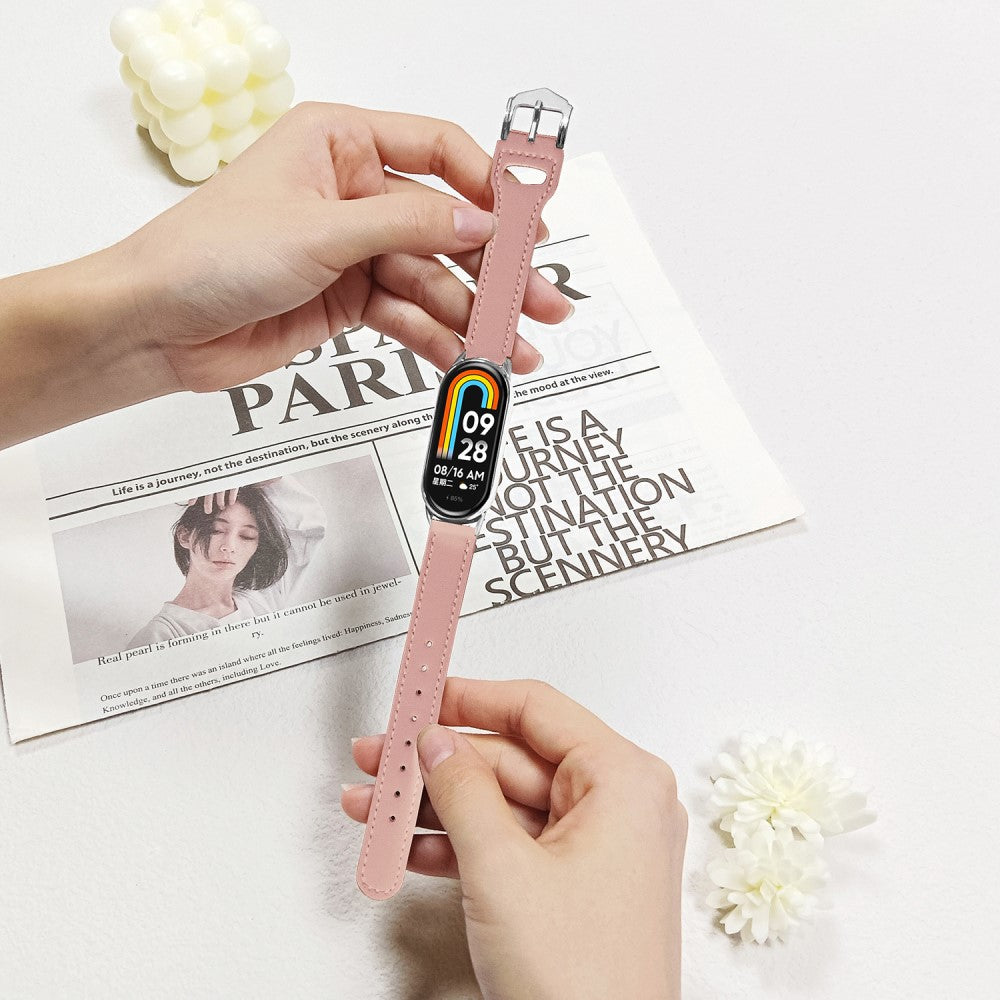 Pasek do zegarka Xiaomi Smart Band 9 NFC / 9 / 8 NFC / 8 Skórzany pasek z mikrofibry ze srebrną klamrą - Różowy