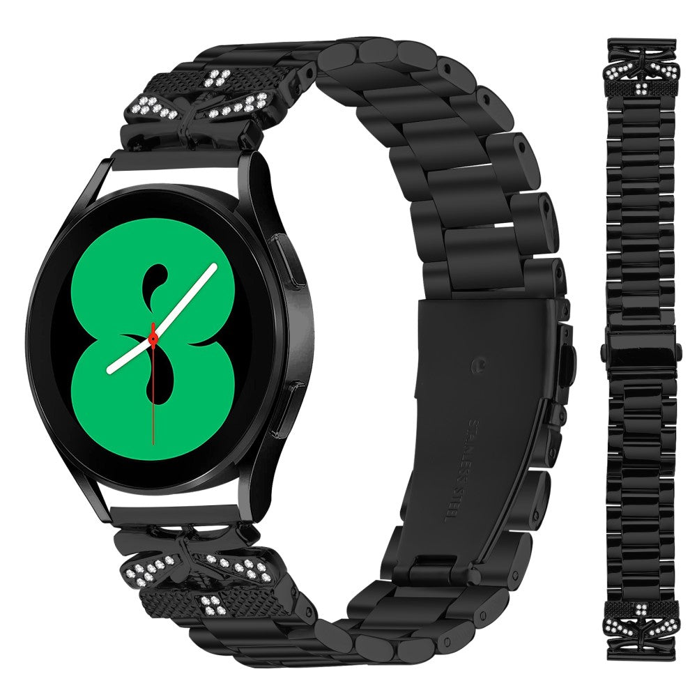 Pasek zamienny Samsung Galaxy Watch 42 mm z motylkowymi kryształkami i metalową bransoletką - Czarny