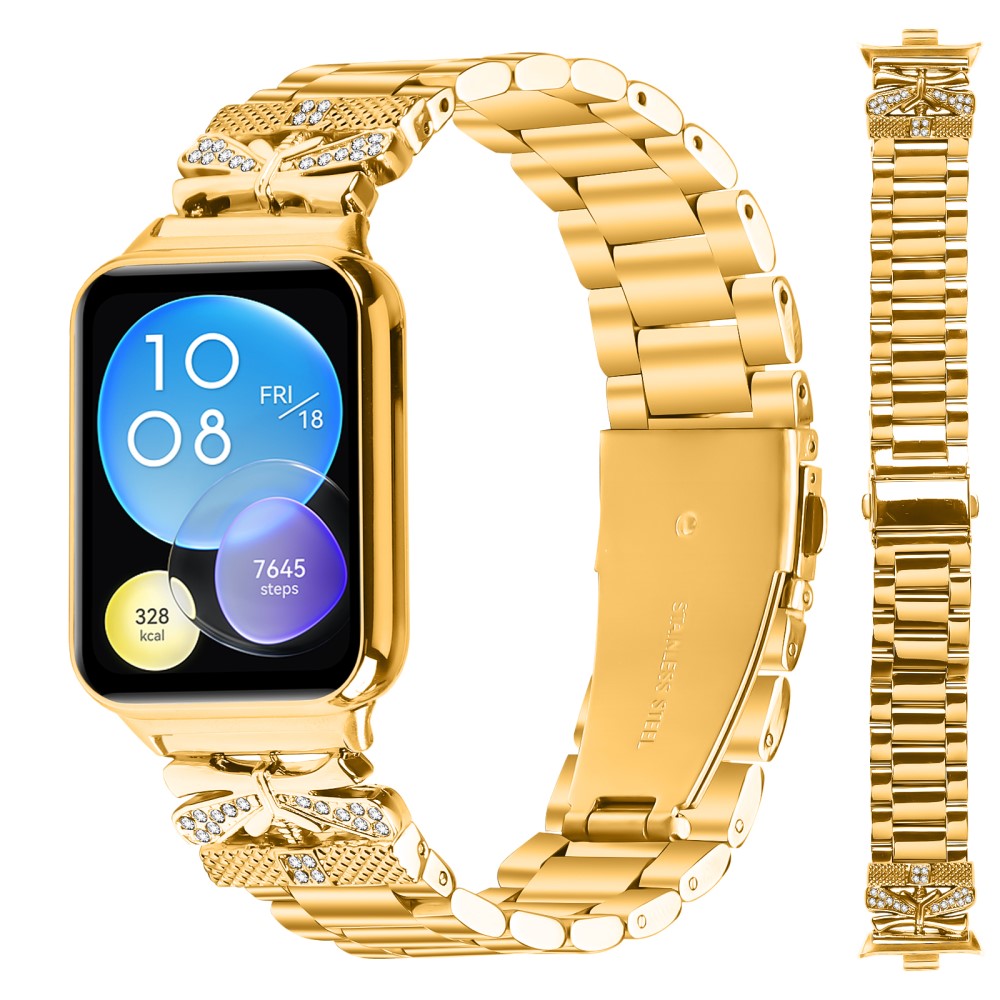 Pasek zamienny Xiaomi Smart Band 8 Pro z motylkowymi kryształkami i metalową bransoletką - Złoty
