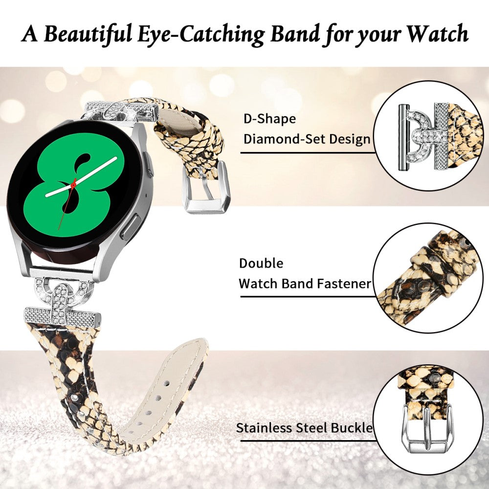 Pasek ze skóry bydlęcej ze srebrną sprzączką do Samsung Galaxy Watch Active 3 / 2 / 1 - Snake Texture