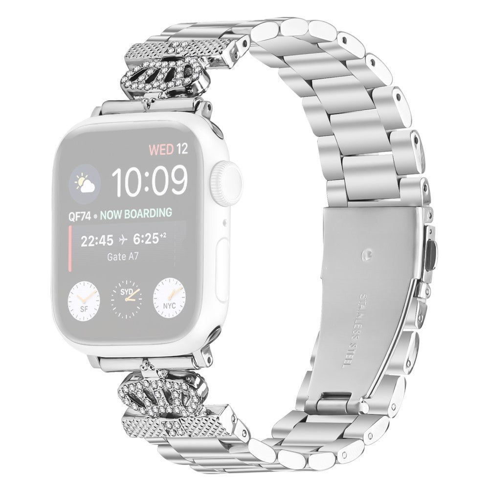 Pasek ze stali nierdzewnej do zegarka Apple Watch Series 41 mm - 40 mm - 38 Mm W Kształcie Korony Z Ozdobnymi Kryształkami, Srebrny