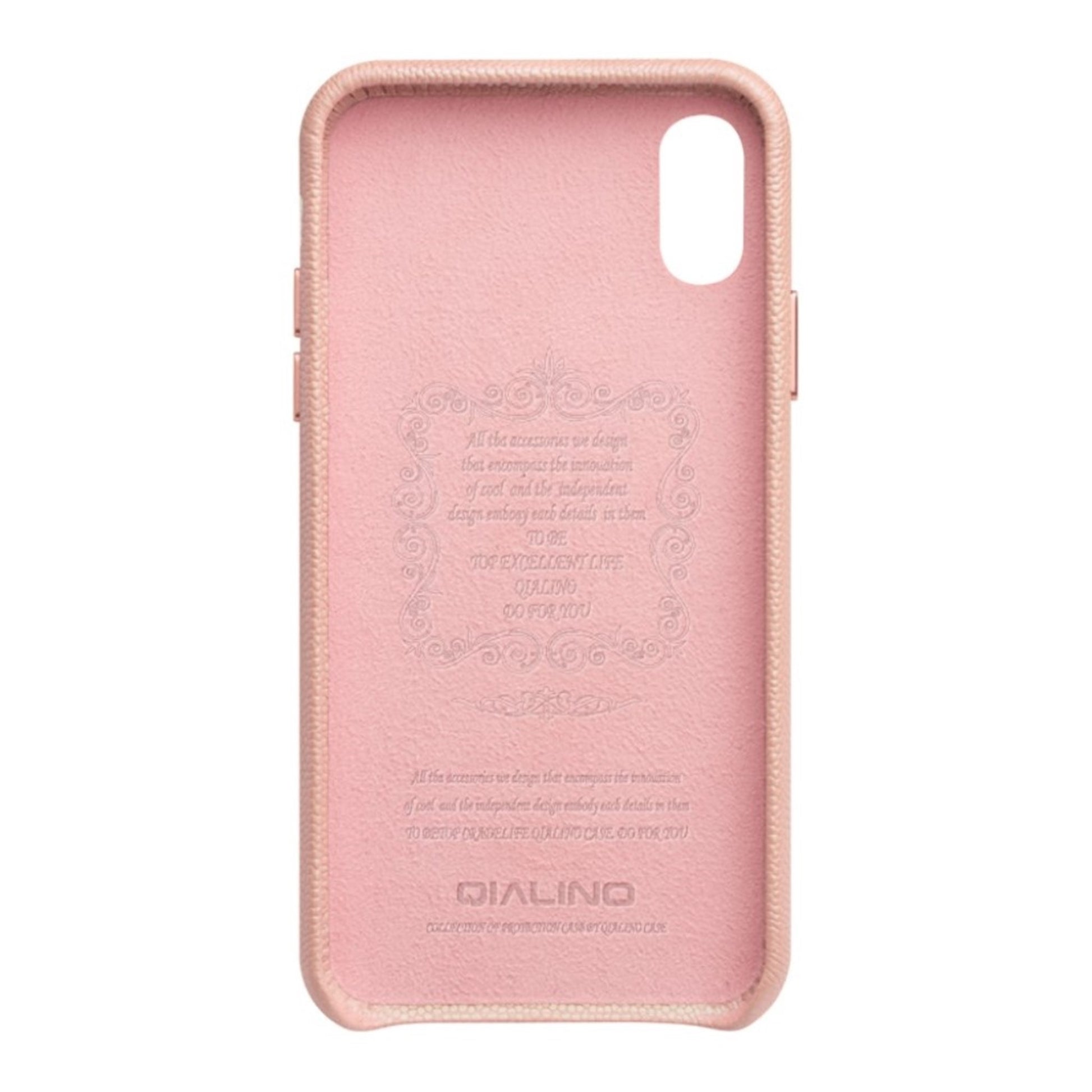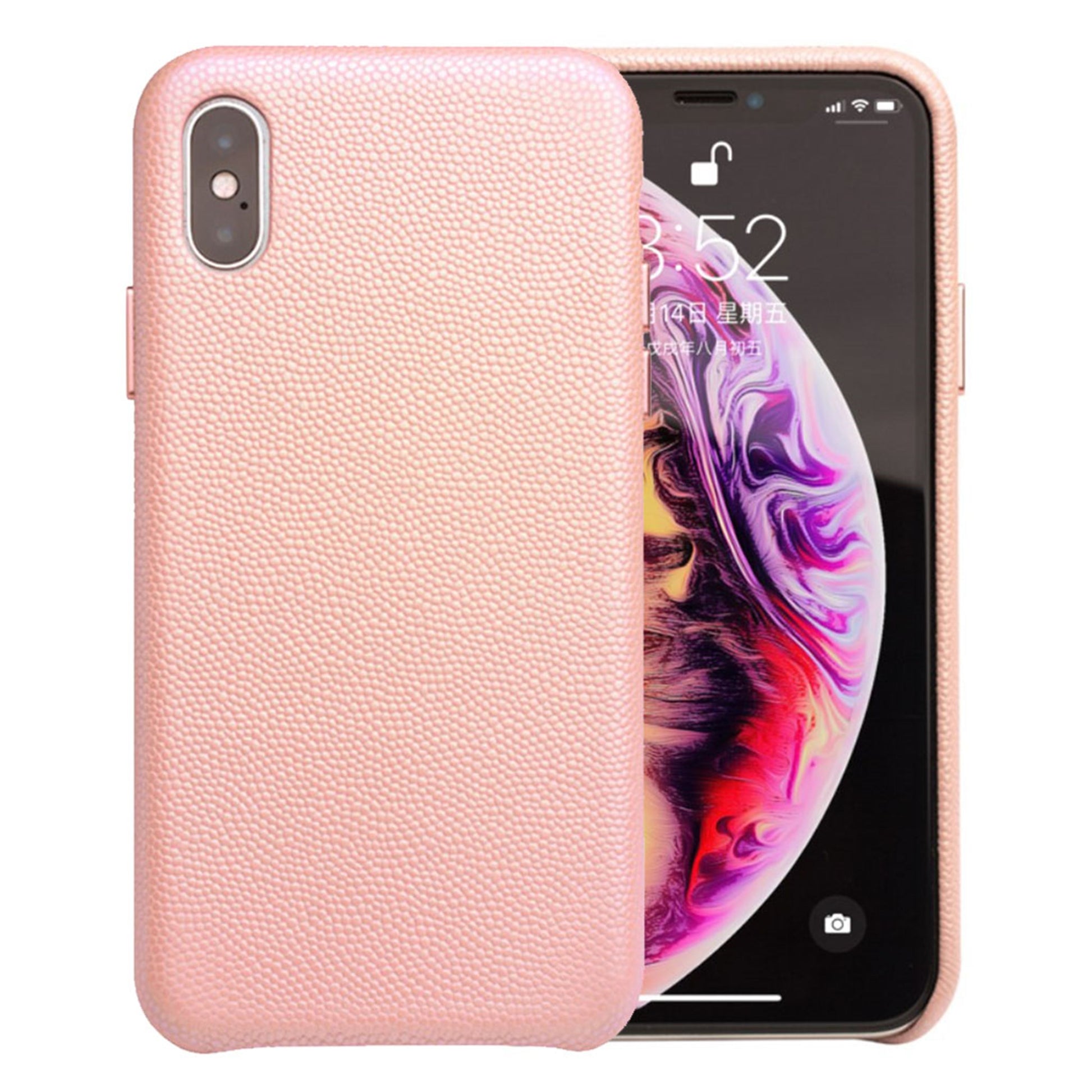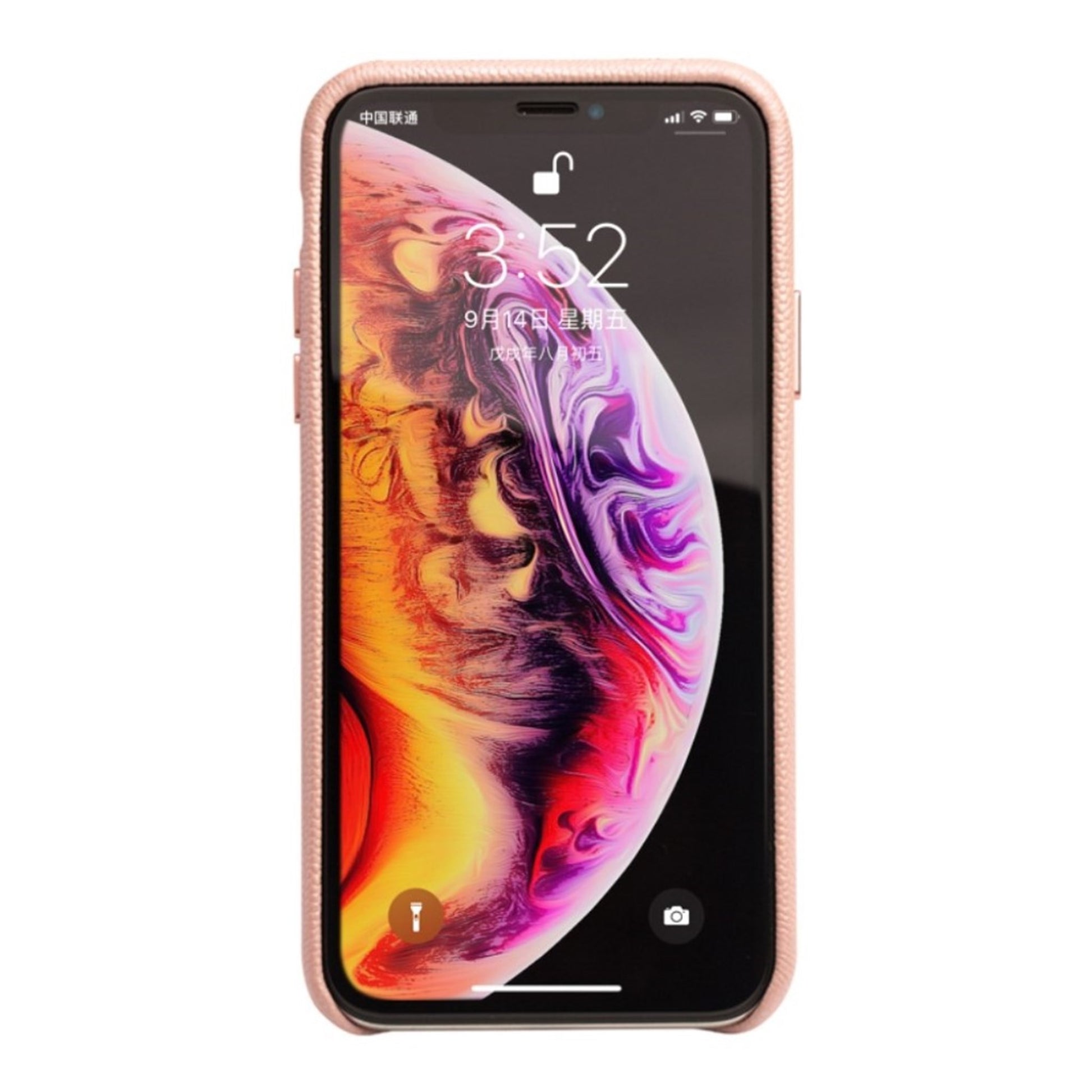 QIALINO iPhone Xs Max etui z prawdziwej skóry o fakturze litchi - Różowy