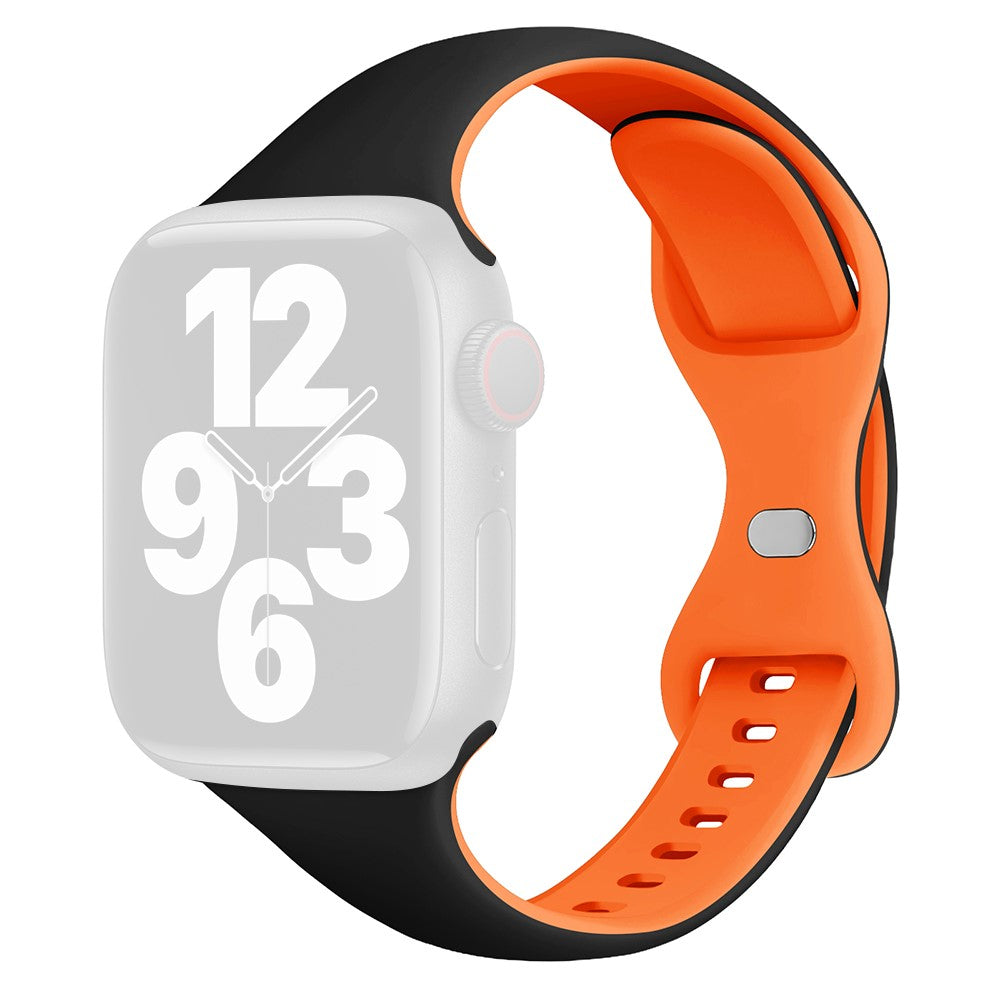Silikonowy pasek KALEBOL do zegarka Apple Watch Series 10 42 mm z zapięciem motylkowym - Czarny + Pomarańczowy
