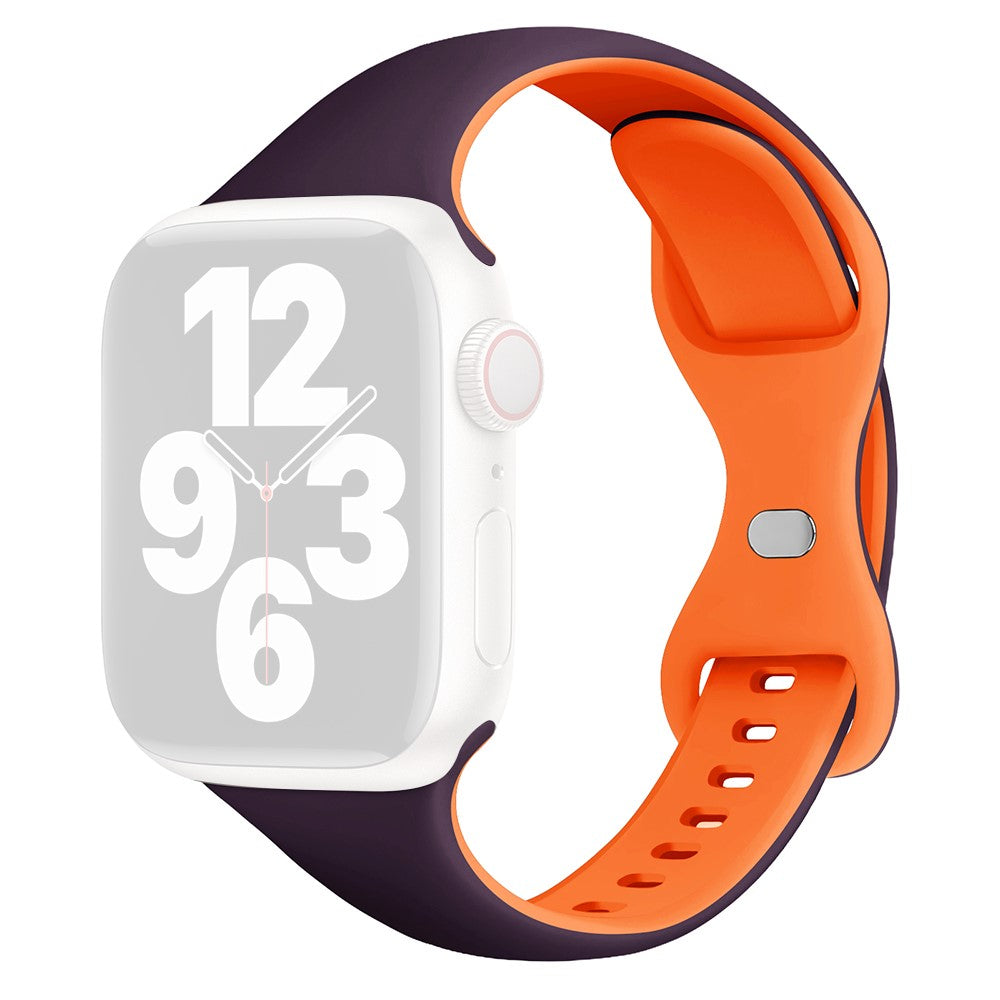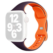 Silikonowy pasek KALEBOL do zegarka Apple Watch Series 10 42 mm z zapięciem motylkowym - Jagodowy Fiolet + Pomarańczowy
