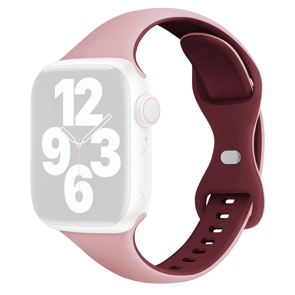 Silikonowy pasek KALEBOL do zegarka Apple Watch Series 10 42 mm z zapięciem motylkowym - Różowy + Czerwony Winny