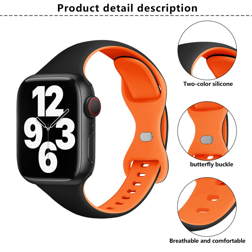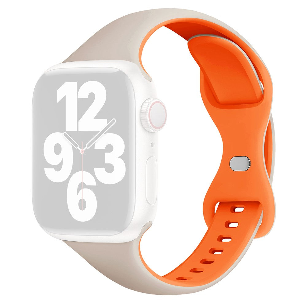 Silikonowy pasek KALEBOL do zegarka Apple Watch Series 10 42 mm z zapięciem motylkowym - Starlight + Orange