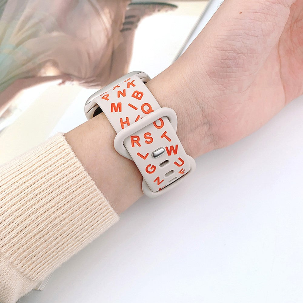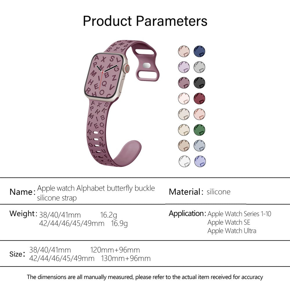 Silikonowy pasek KALEBOL z literami alfabetu do zegarka Apple Watch Series 10 42 mm - Fioletowy + Czarny