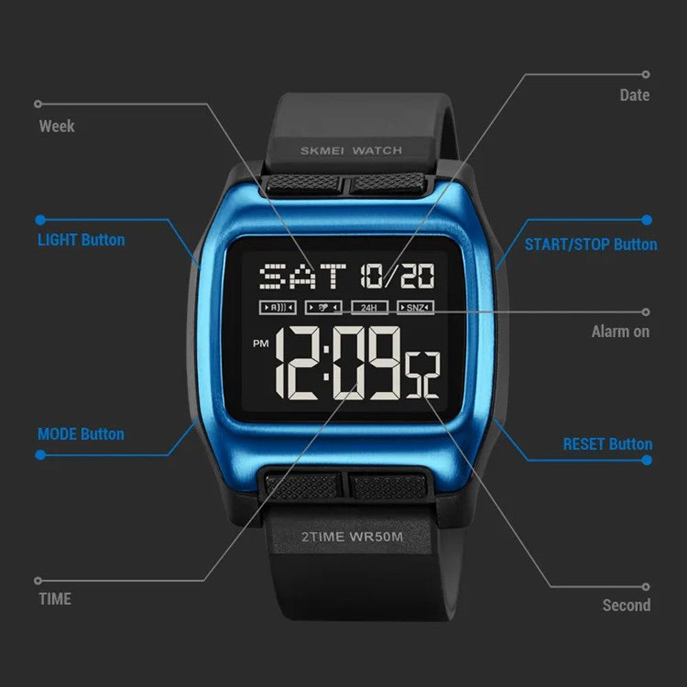 SKMEI 2193 Kwadratowy zegarek cyfrowy z podświetleniem EL - Black+White Dial