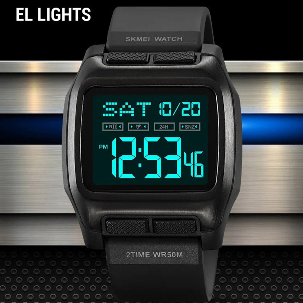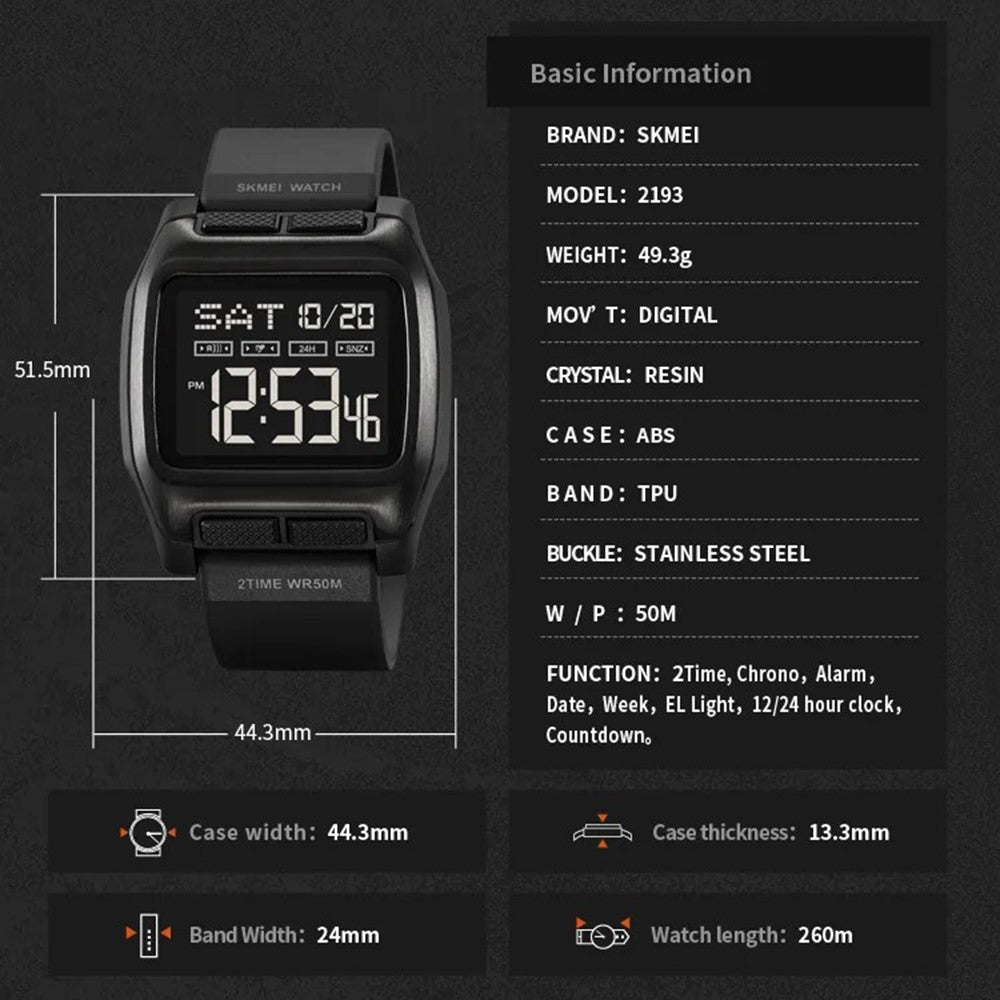 SKMEI 2193 Kwadratowy zegarek cyfrowy z podświetleniem EL - Black+Blue