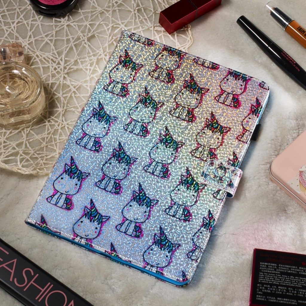 Skórzane etui Amazon Kindle (2019) z brokatowymi cekinami - Jednorożce