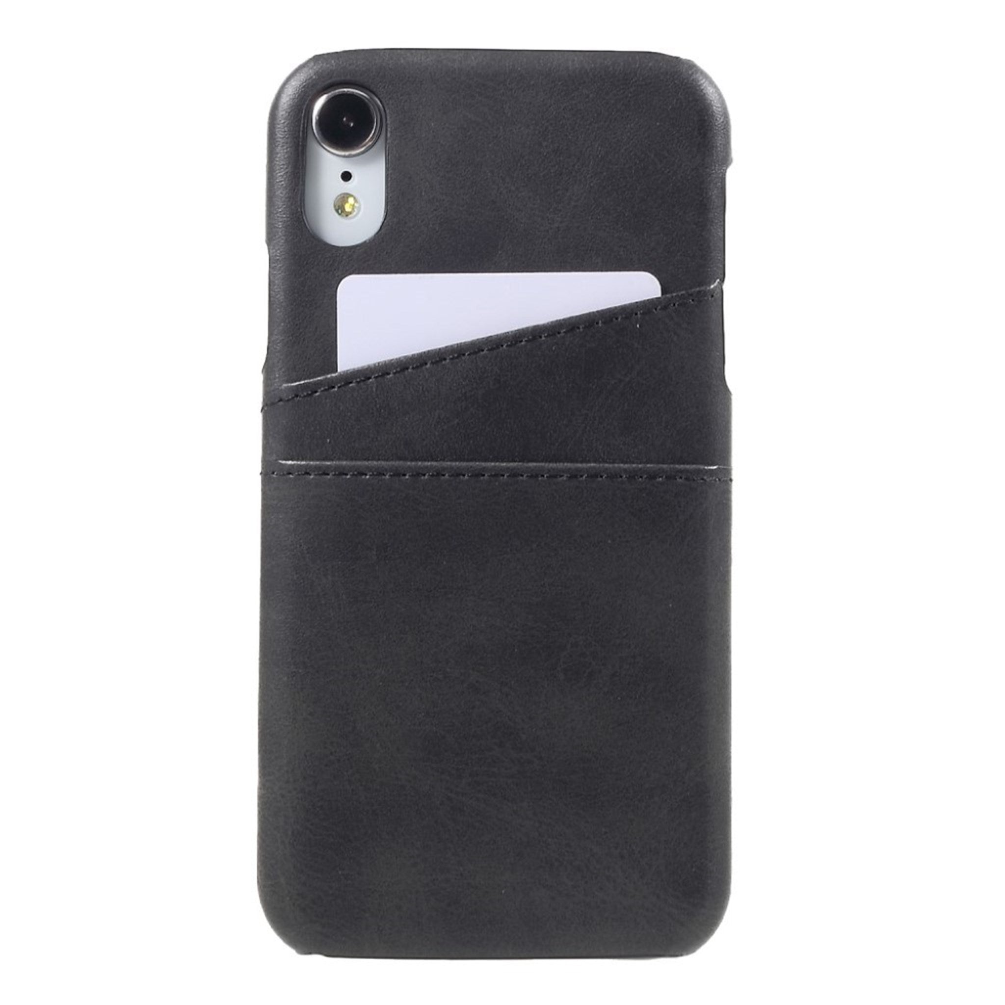 Skórzane etui na iPhone Xr z podwójnym miejscem na karty - Czarne