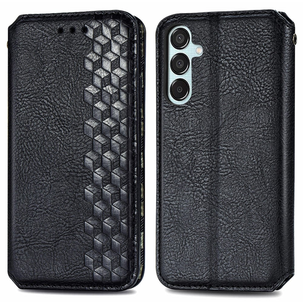 Skórzane etui Samsung Galaxy M15 ze stylowym nadrukiem w romby - Czarne