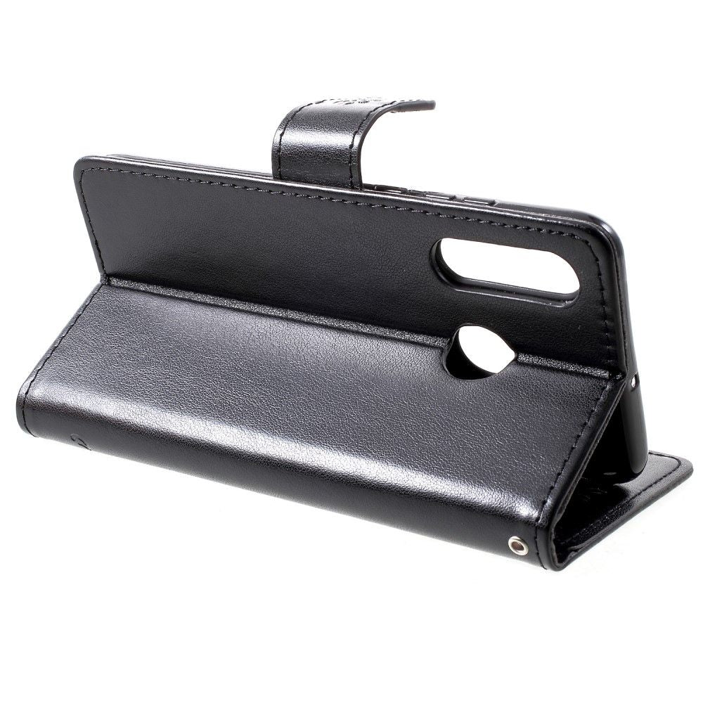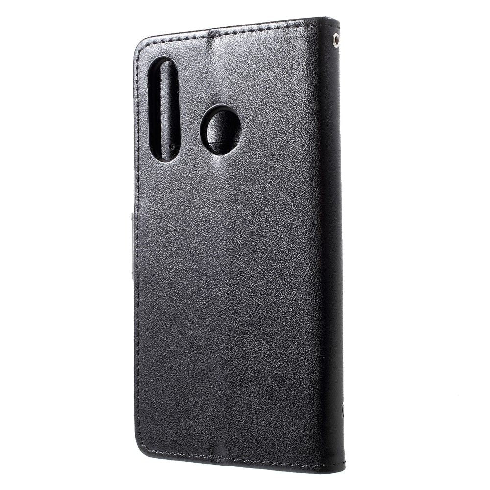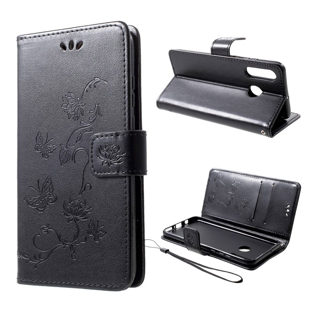 Skórzane etui z klapką Huawei P30 Lite z nadrukiem kwiatu motyla - Czarne