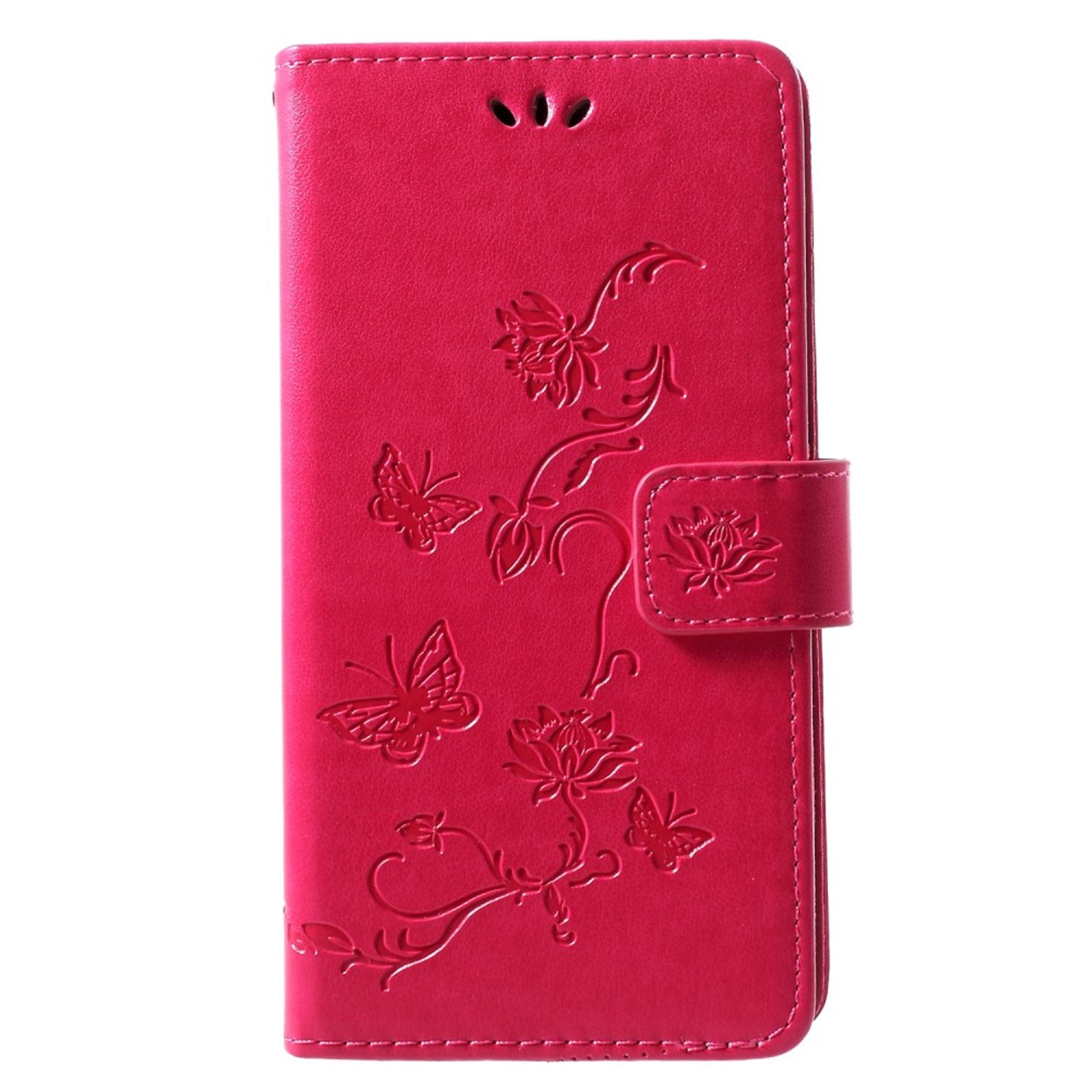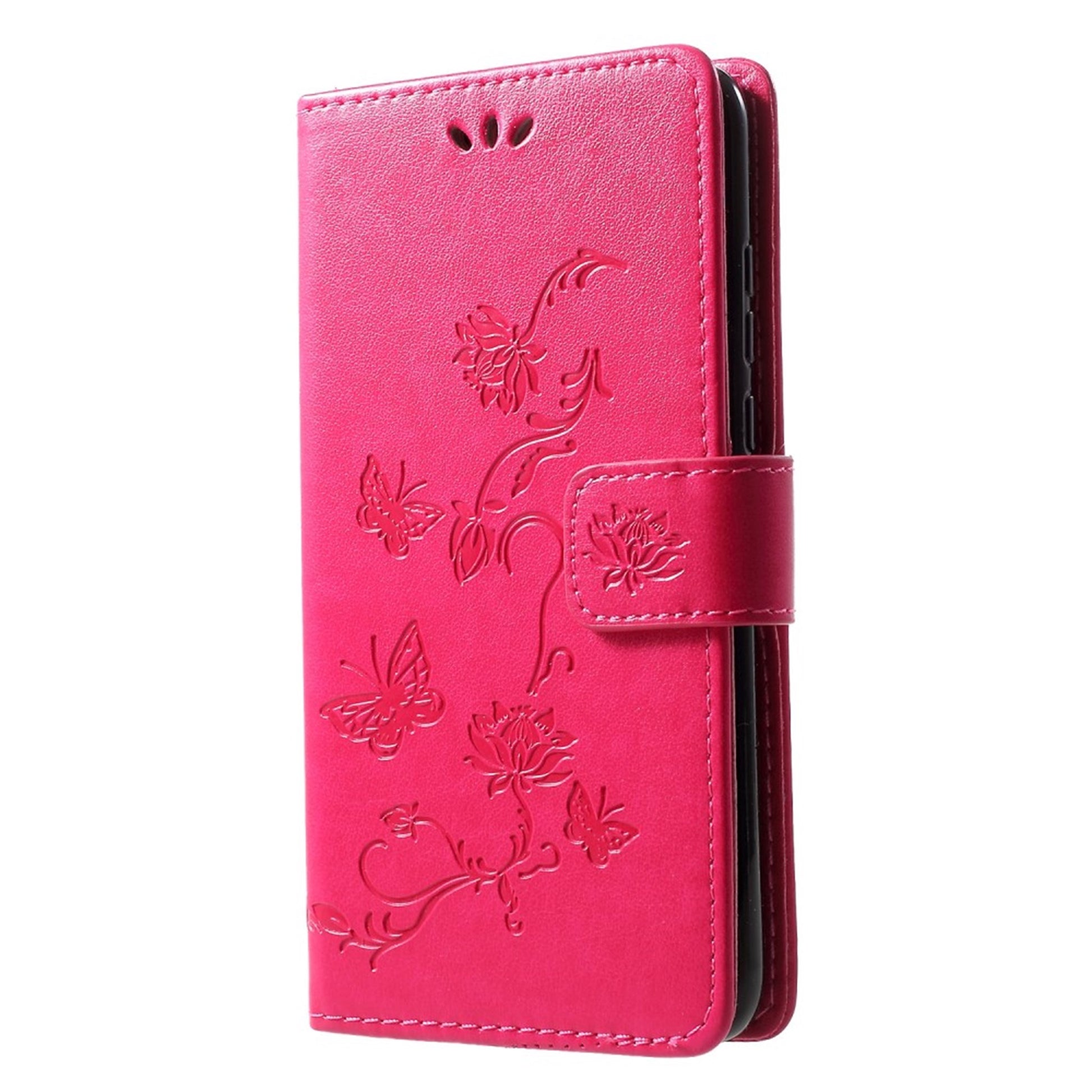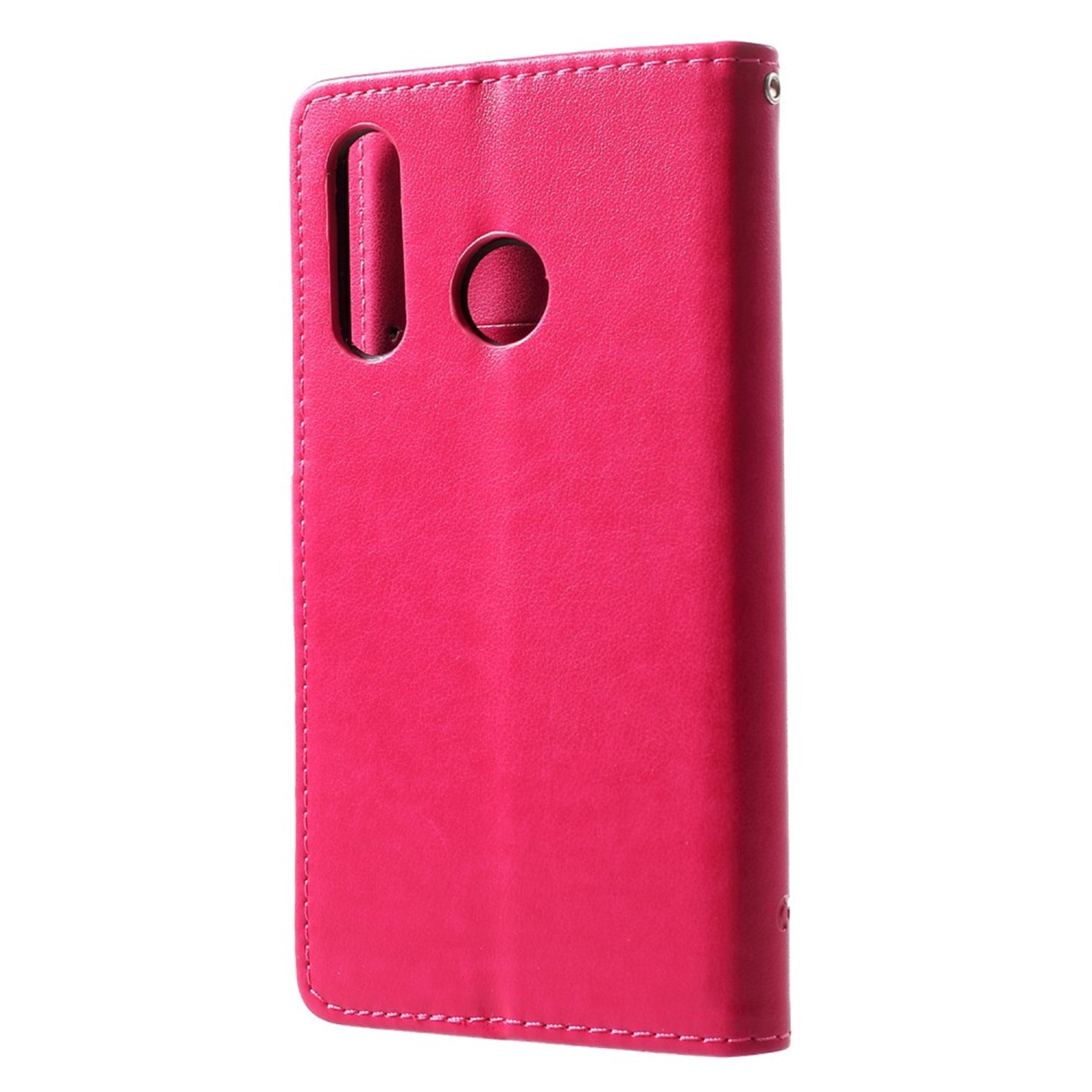Skórzane etui z klapką Huawei P30 Lite z nadrukiem kwiatu motyla - Czerwone