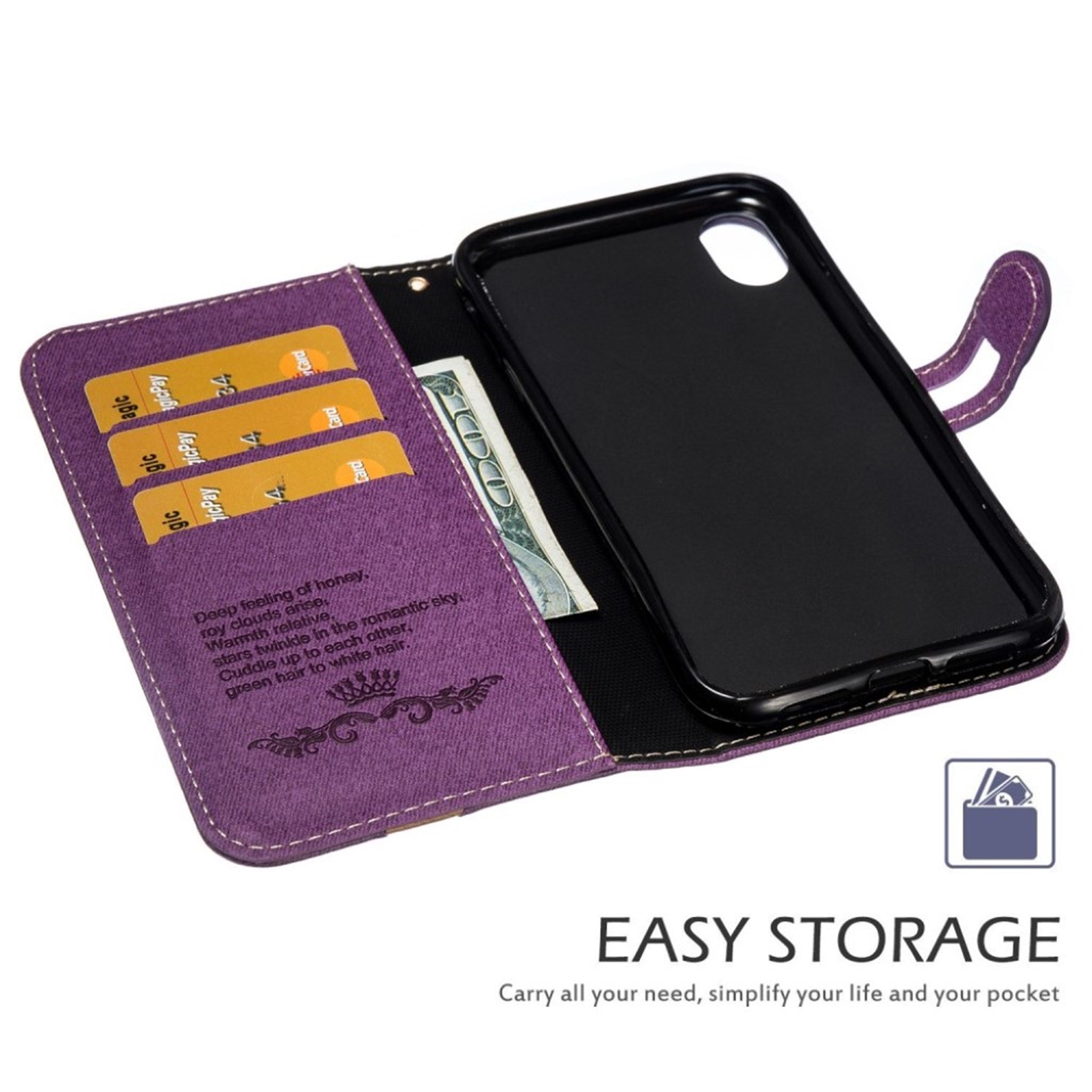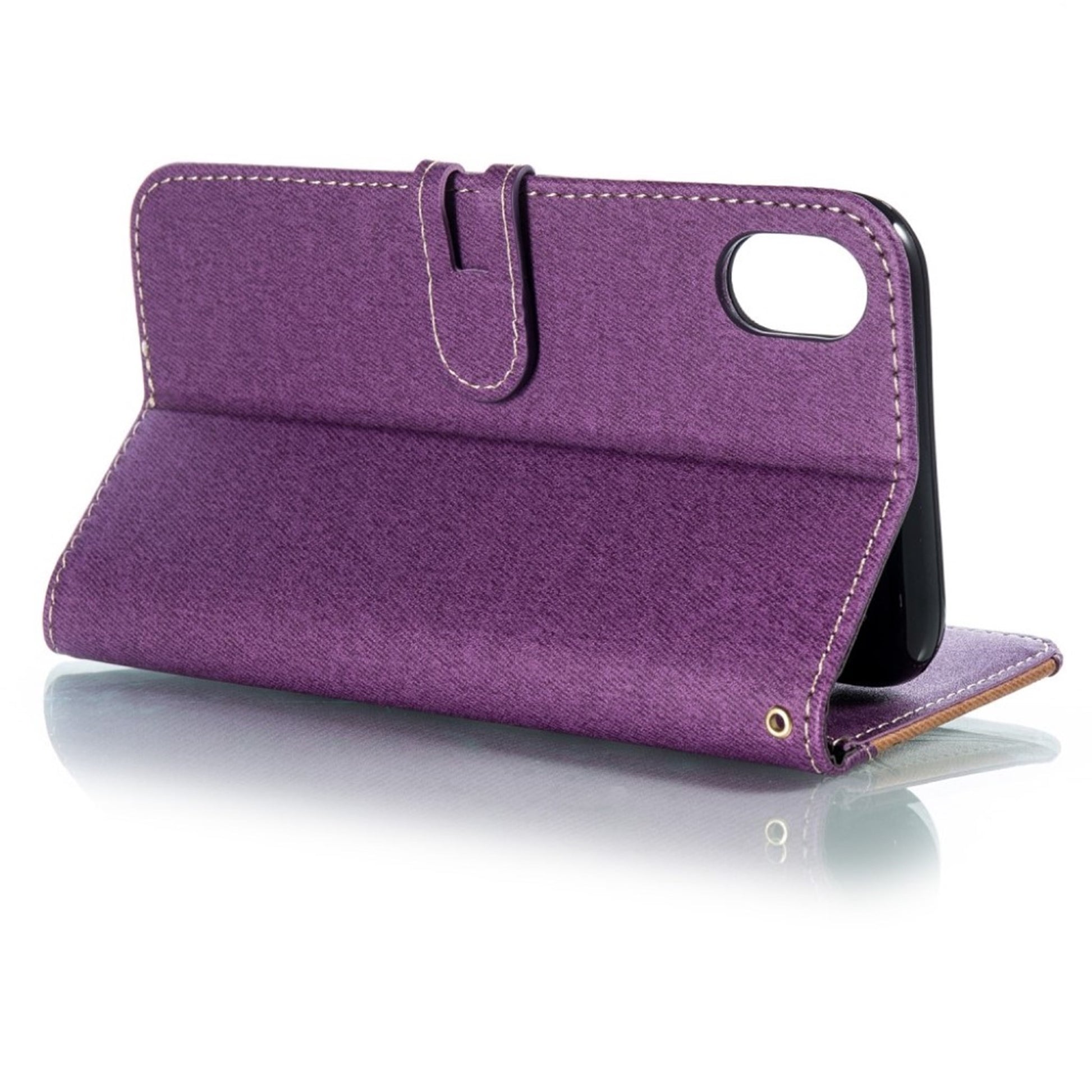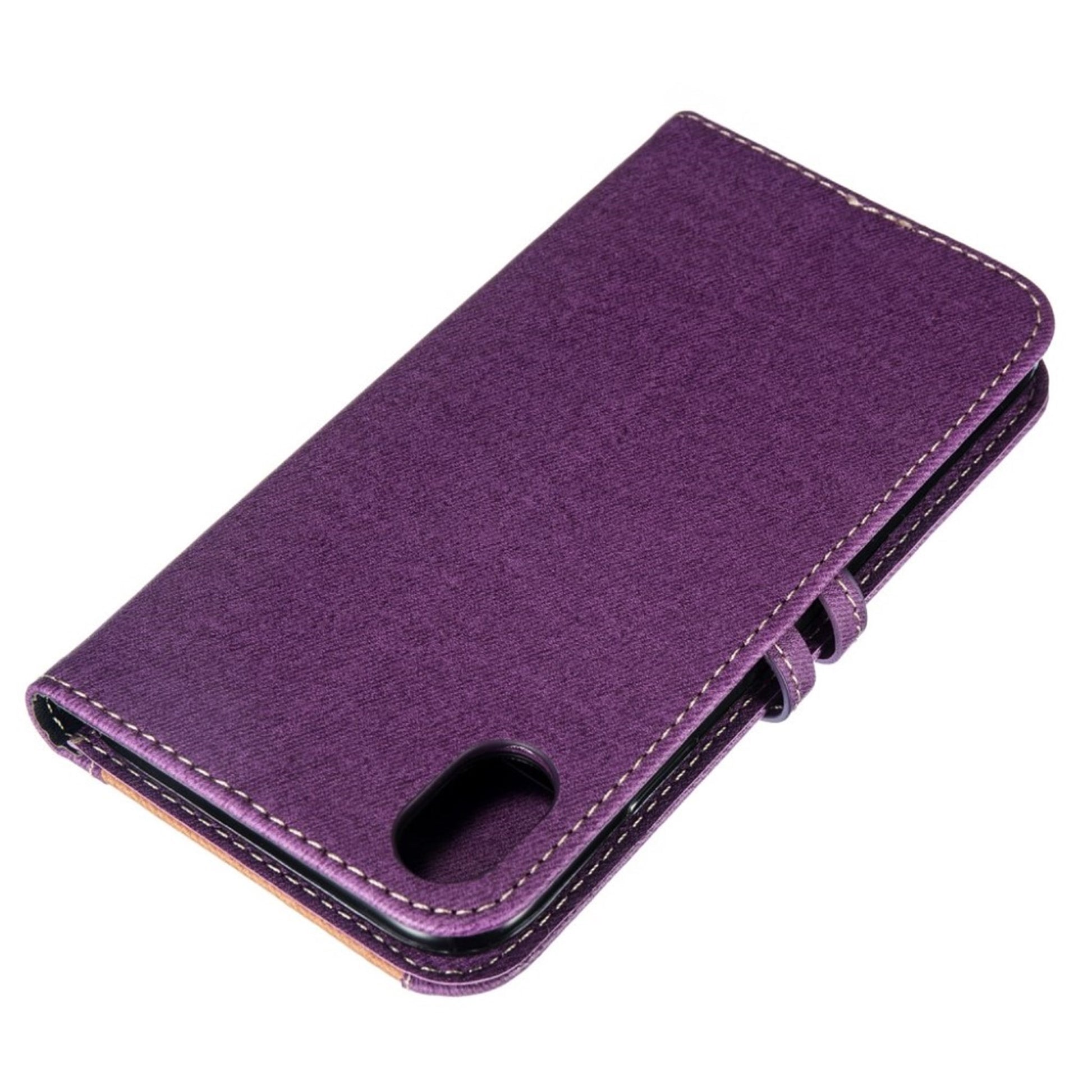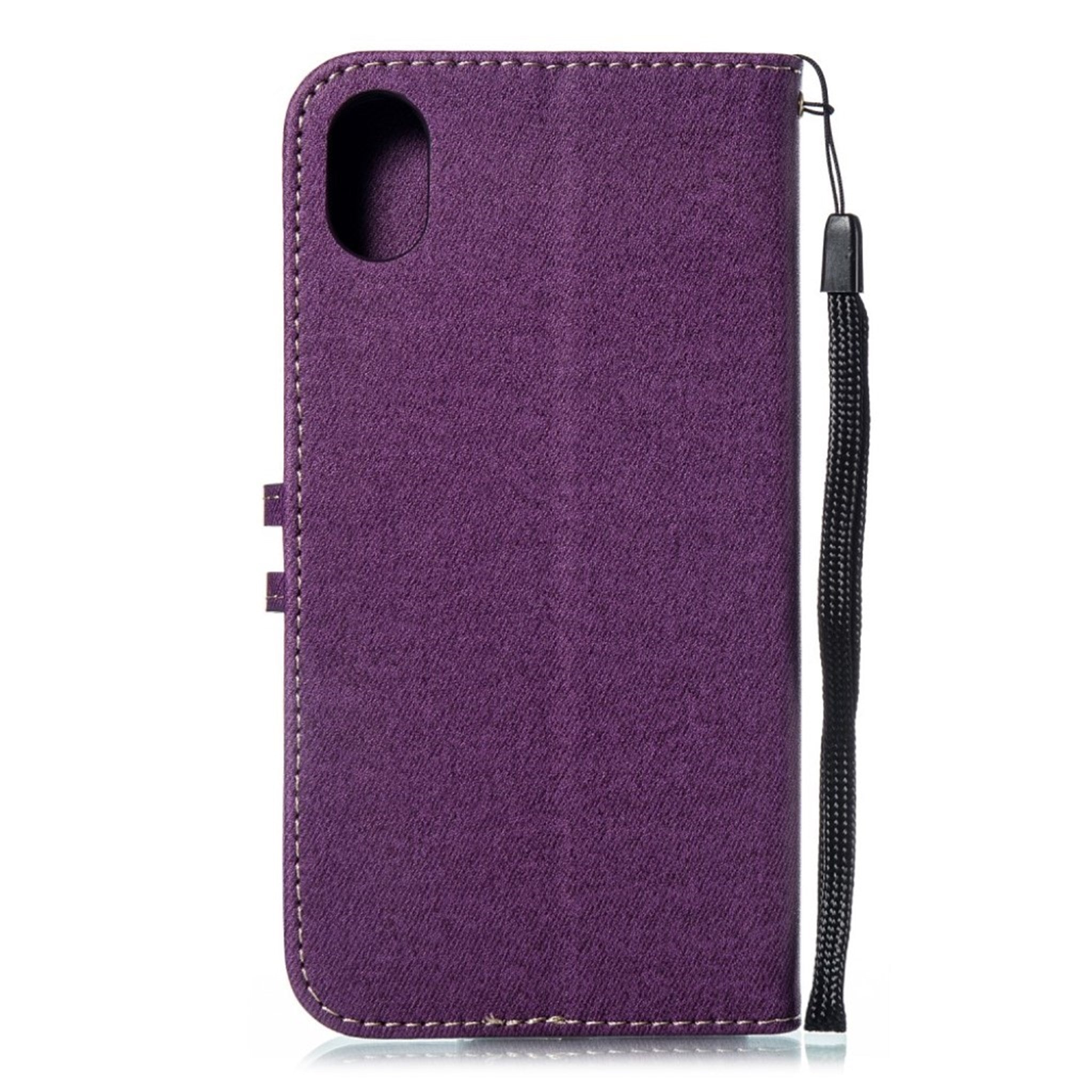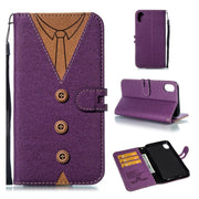 Skórzane etui z klapką na iPhone Xr z nadrukiem męskiego krawata - Fioletowe