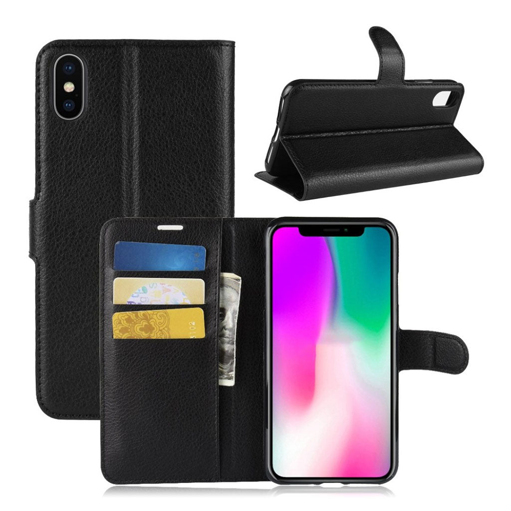 Skórzane etui z klapką o fakturze litchi na iPhone'a Xr - Czarne