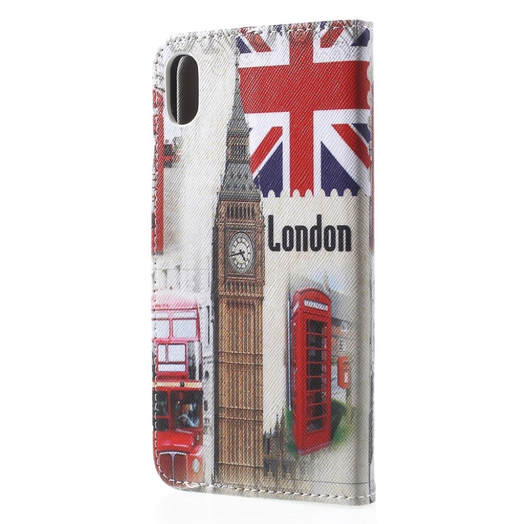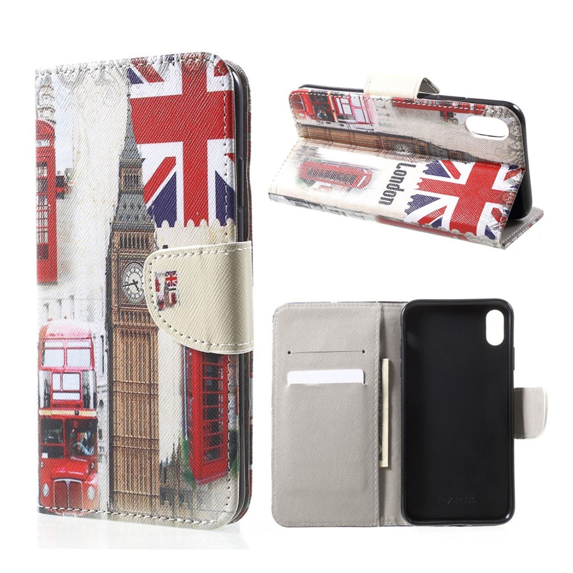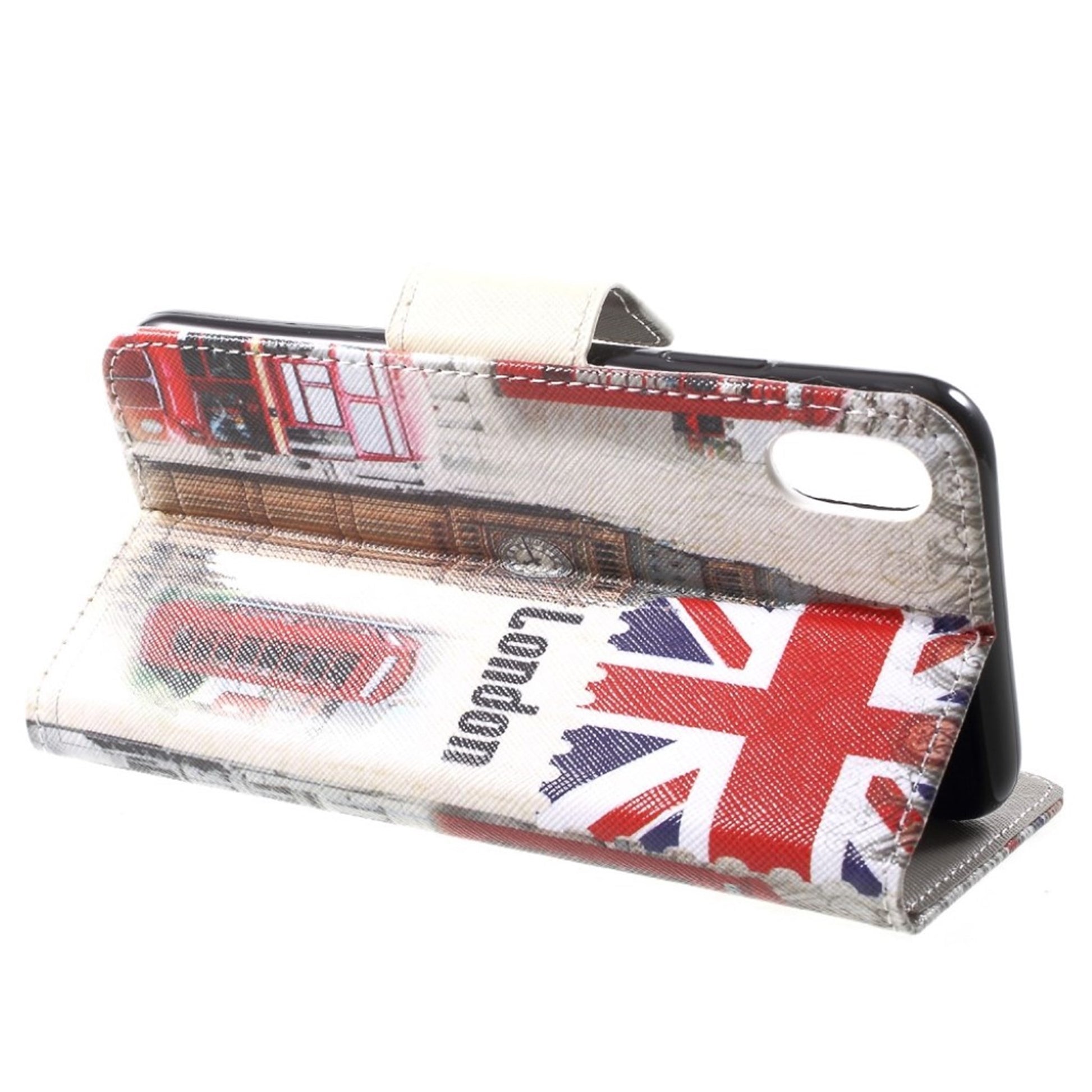 Skórzane etui z klapką z nadrukiem na iPhone Xr - Big Ben I Flaga Wielkiej Brytanii