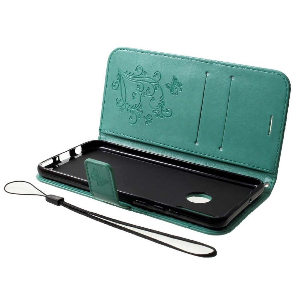 Skórzane etui z nadrukiem motyla na Huawei P30 Lite - Cyjan