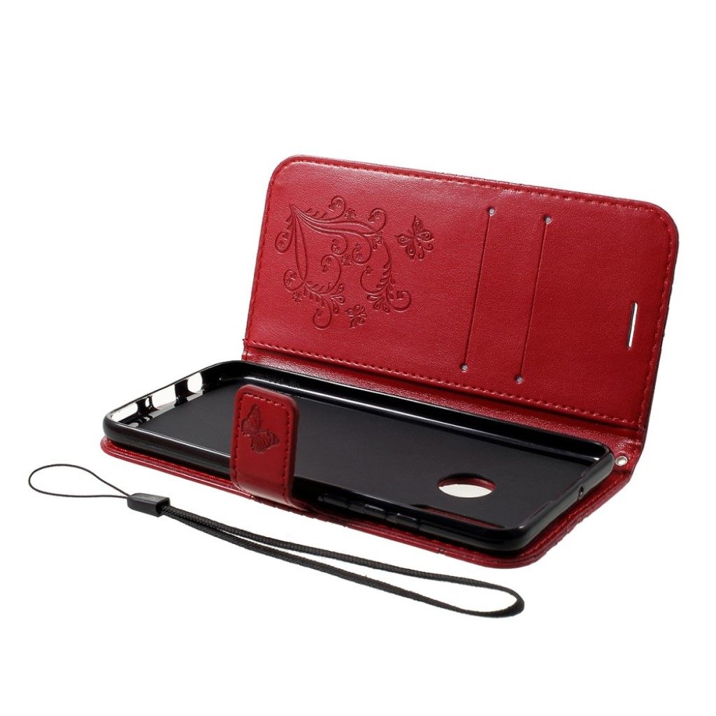 Skórzane etui z nadrukiem motyla na Huawei P30 Lite - Czerwone