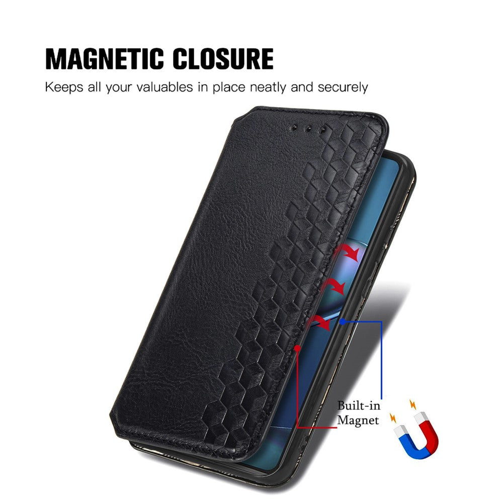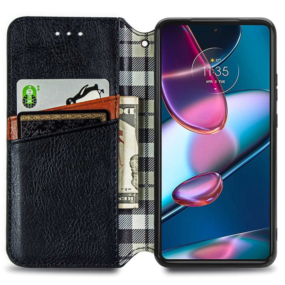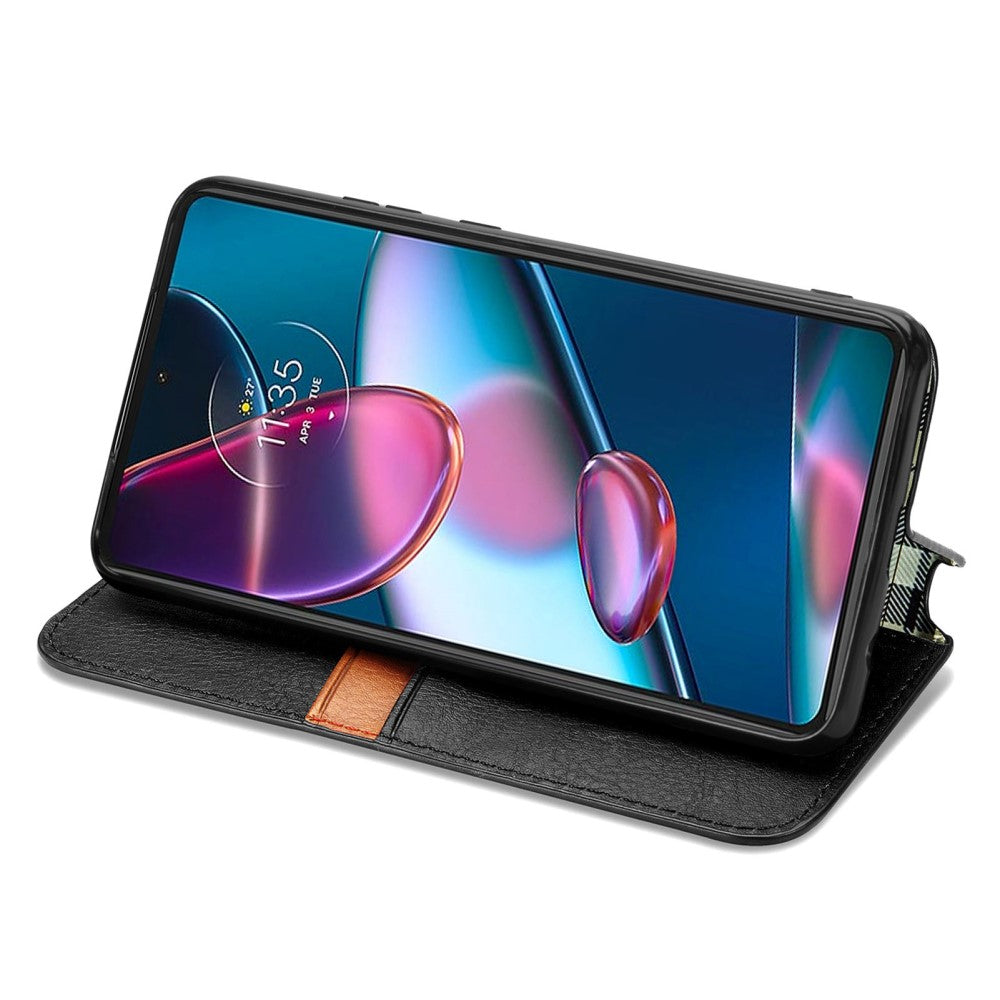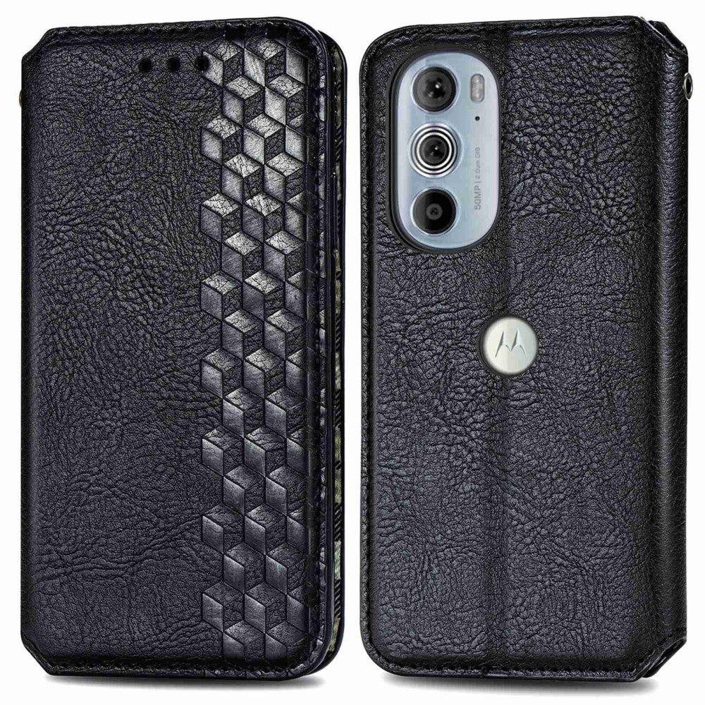 Skórzane etui ze stylowym nadrukiem rombu dla Motorola Edge 30 Pro - Czarny