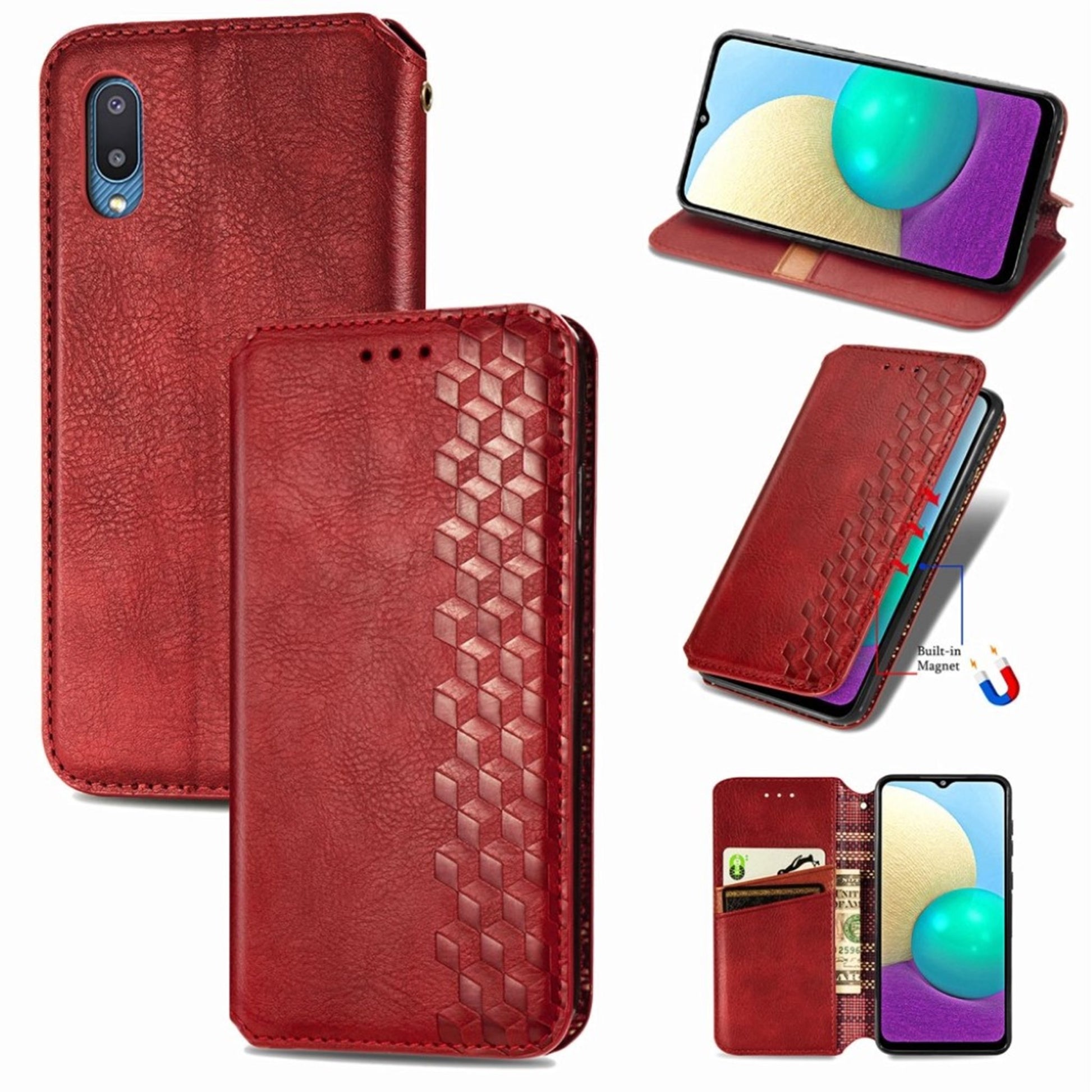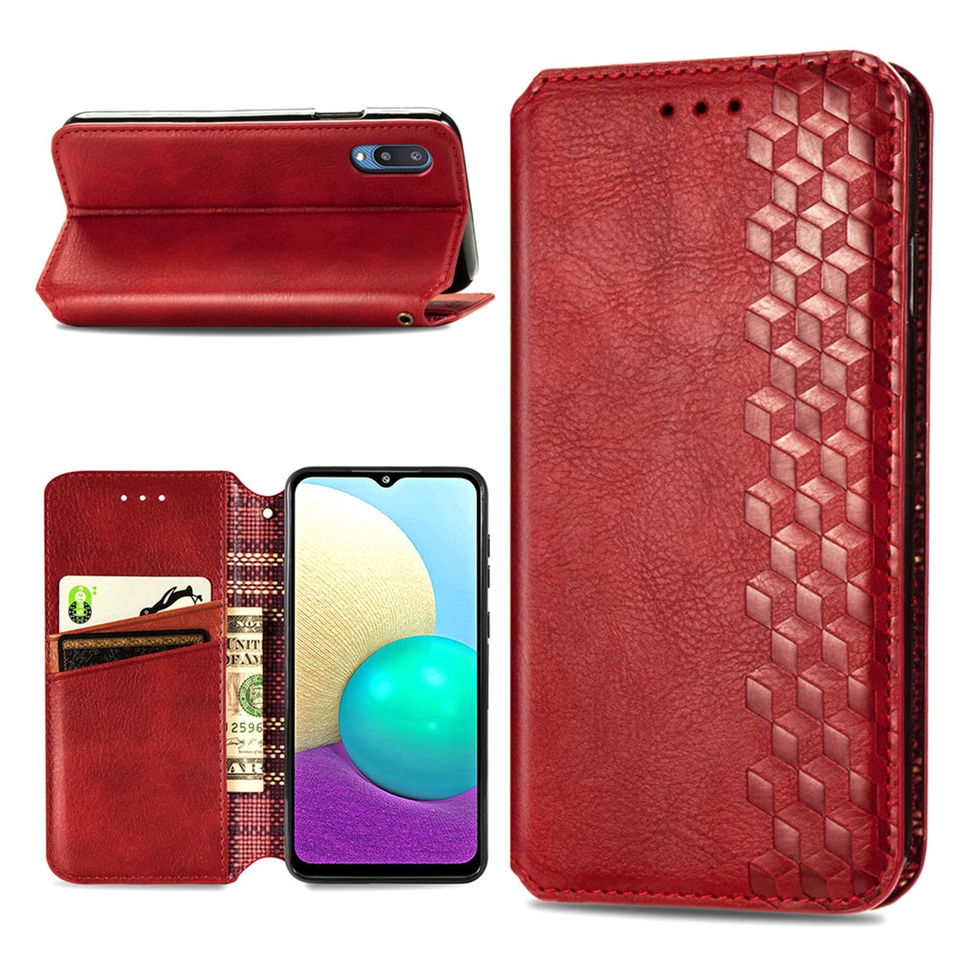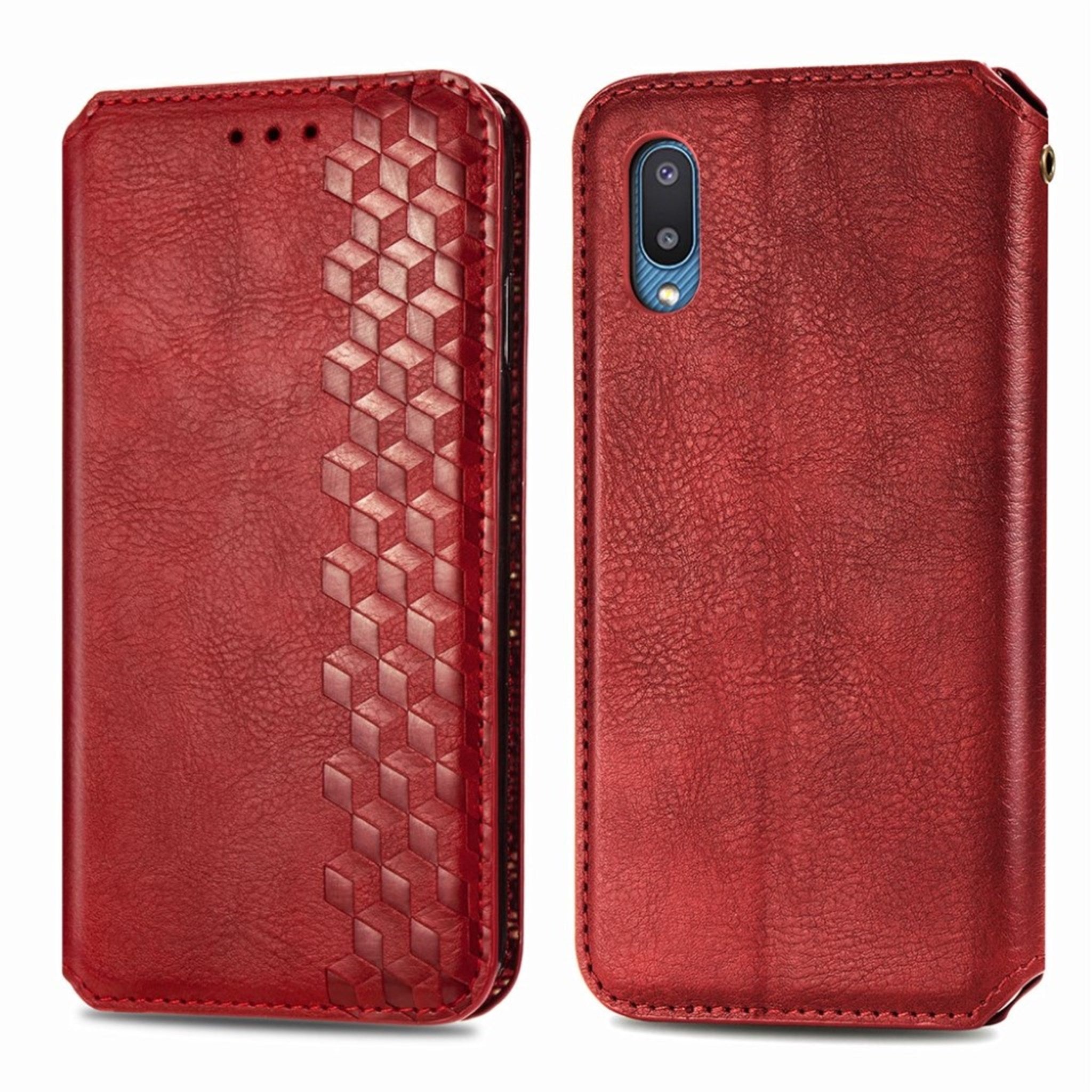 Skórzane etui ze stylowym nadrukiem rombu dla Samsung Galaxy A02 - Czerwony