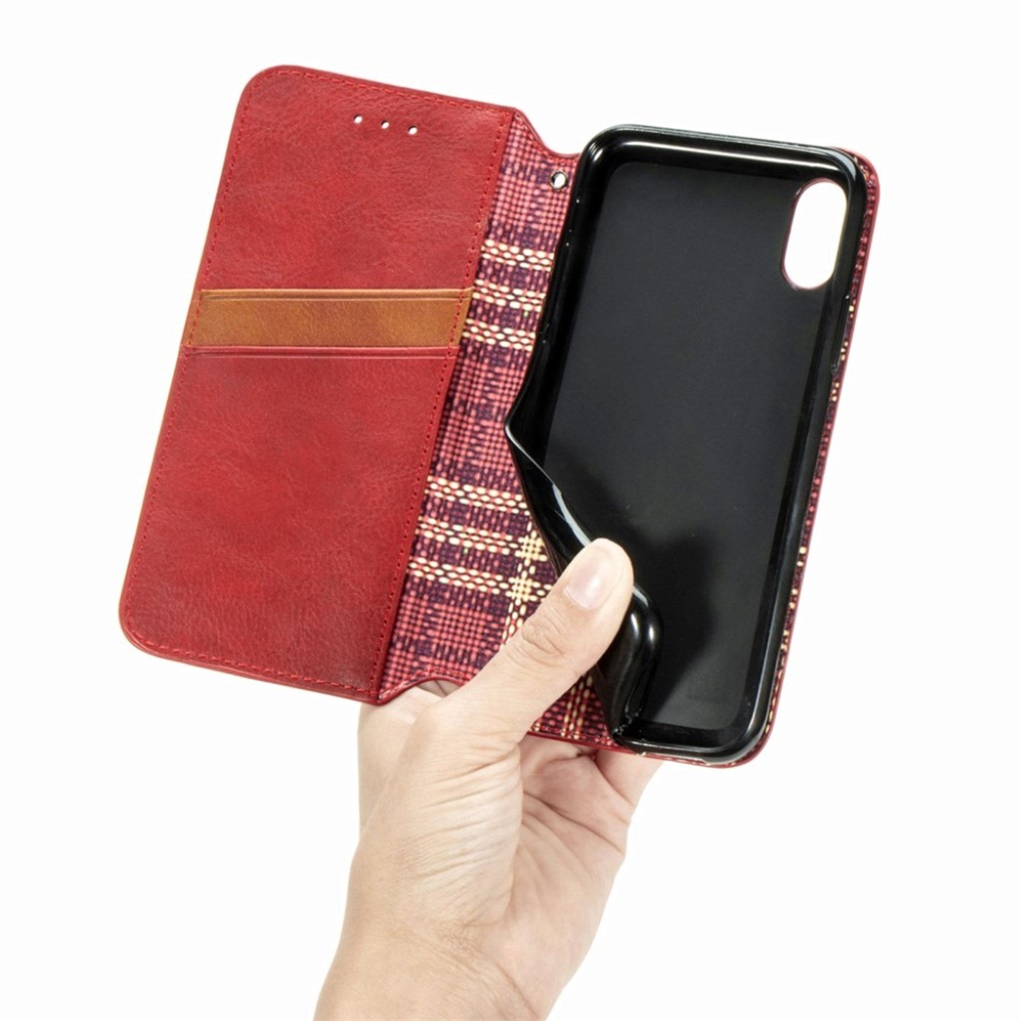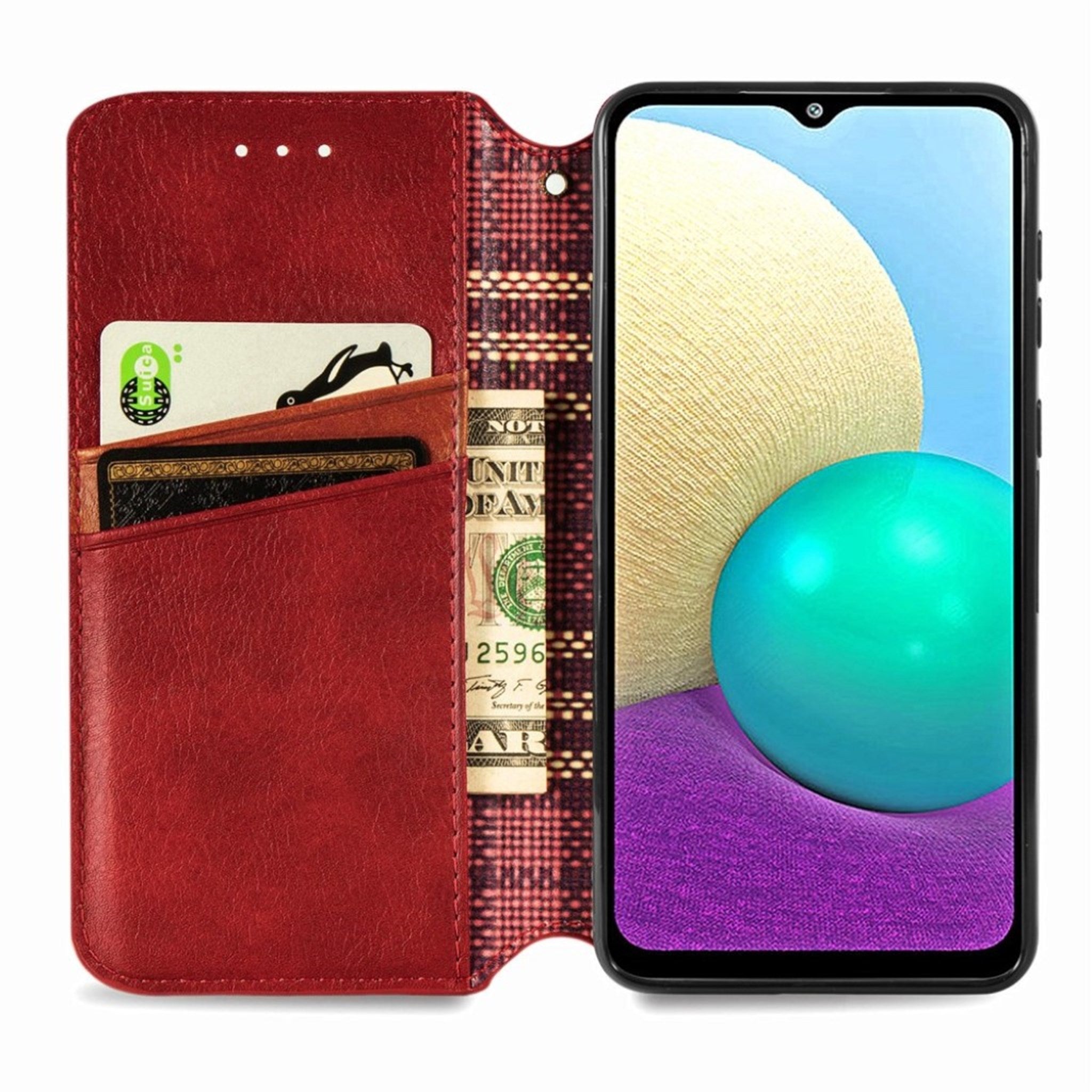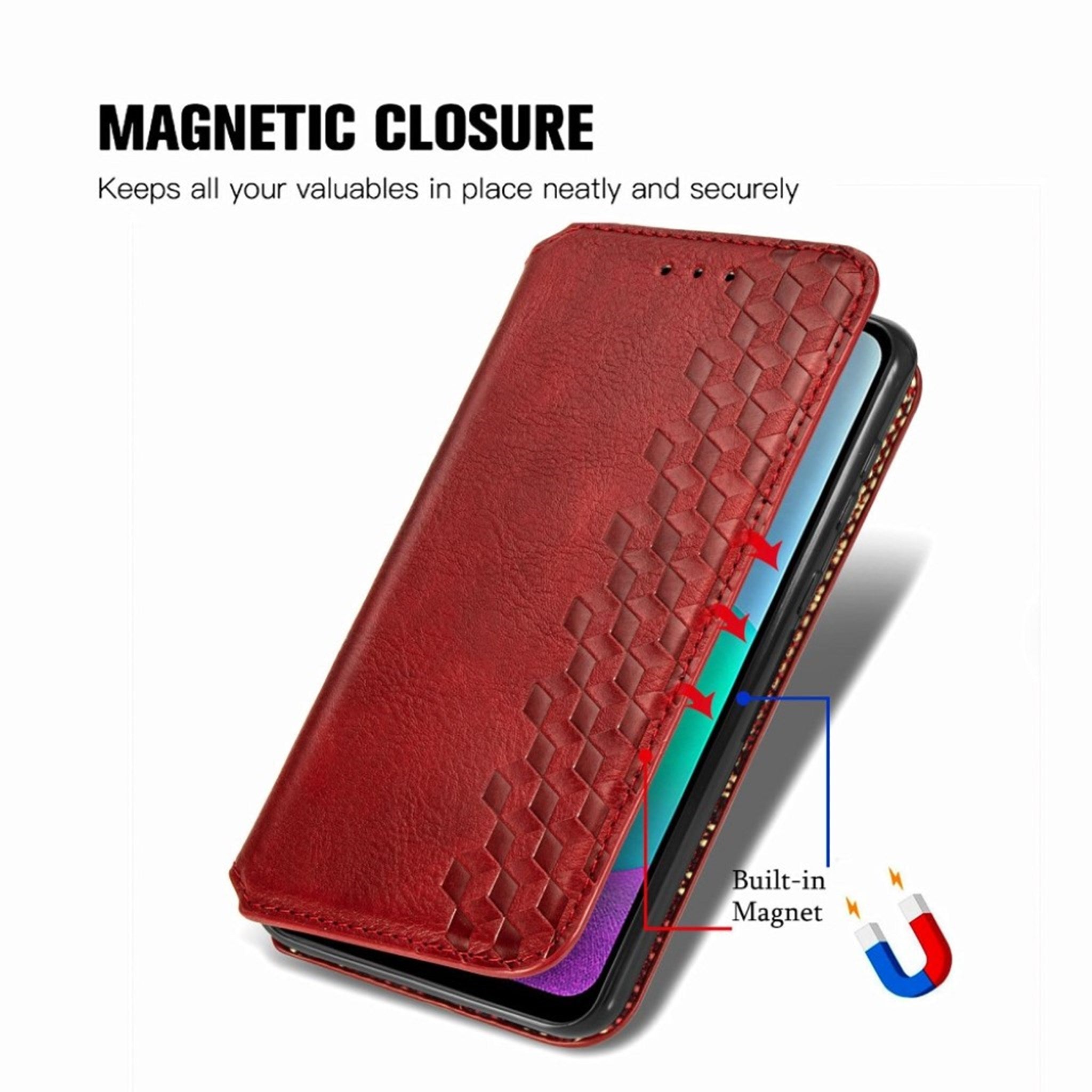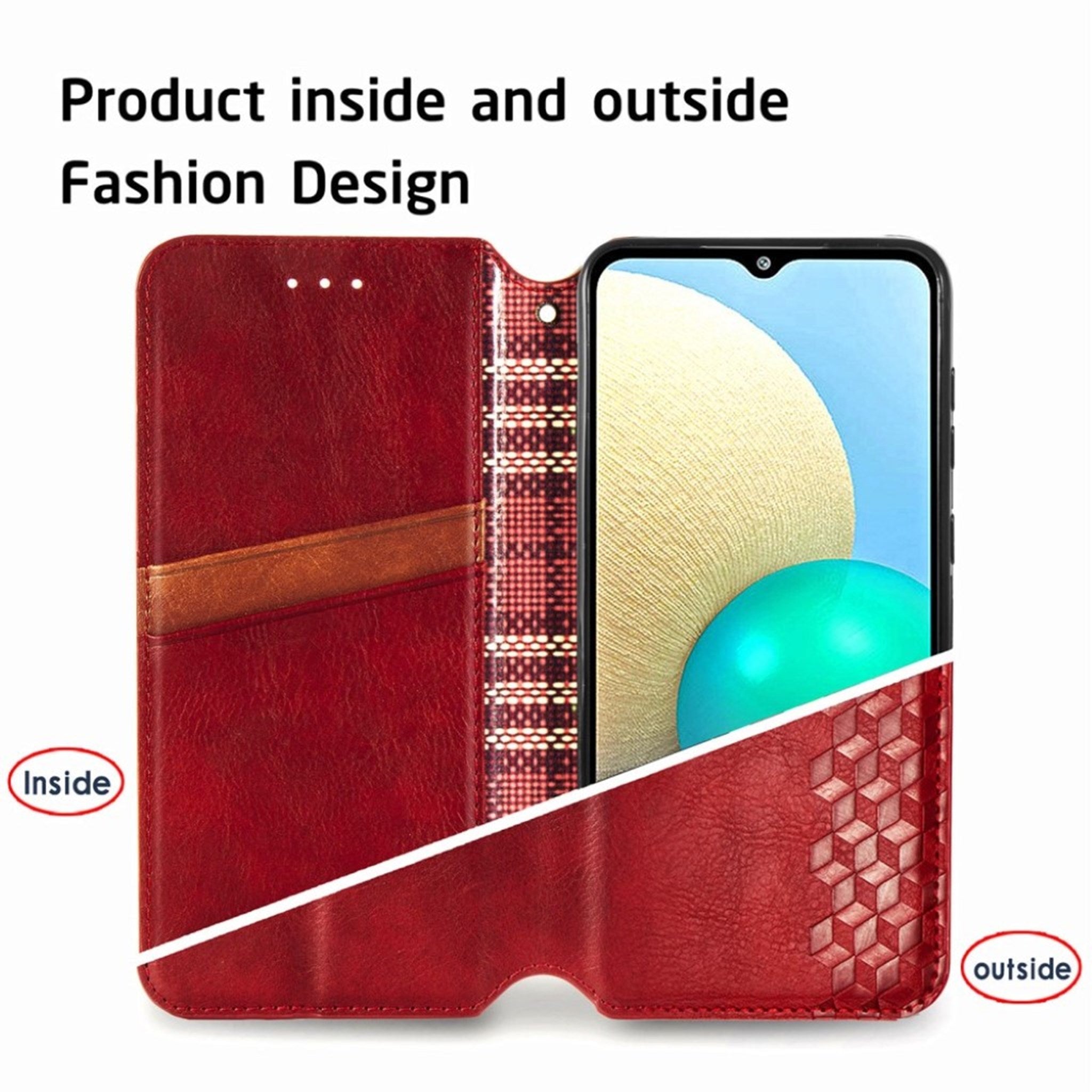 Skórzane etui ze stylowym nadrukiem rombu dla Samsung Galaxy A02 - Czerwony