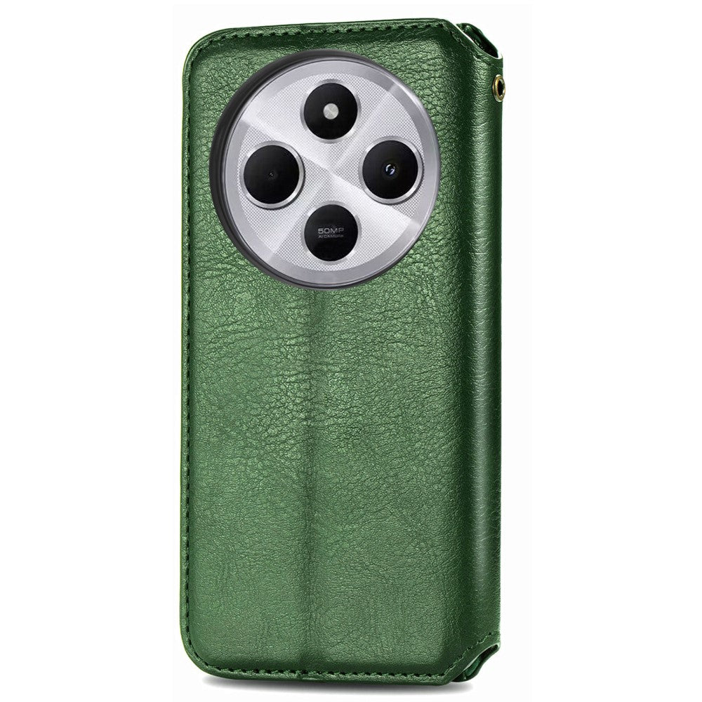 Skórzane etui ze stylowym tłoczeniem w romby do Xiaomi Redmi 14C / Xiaomi Redmi 14R - Zielony