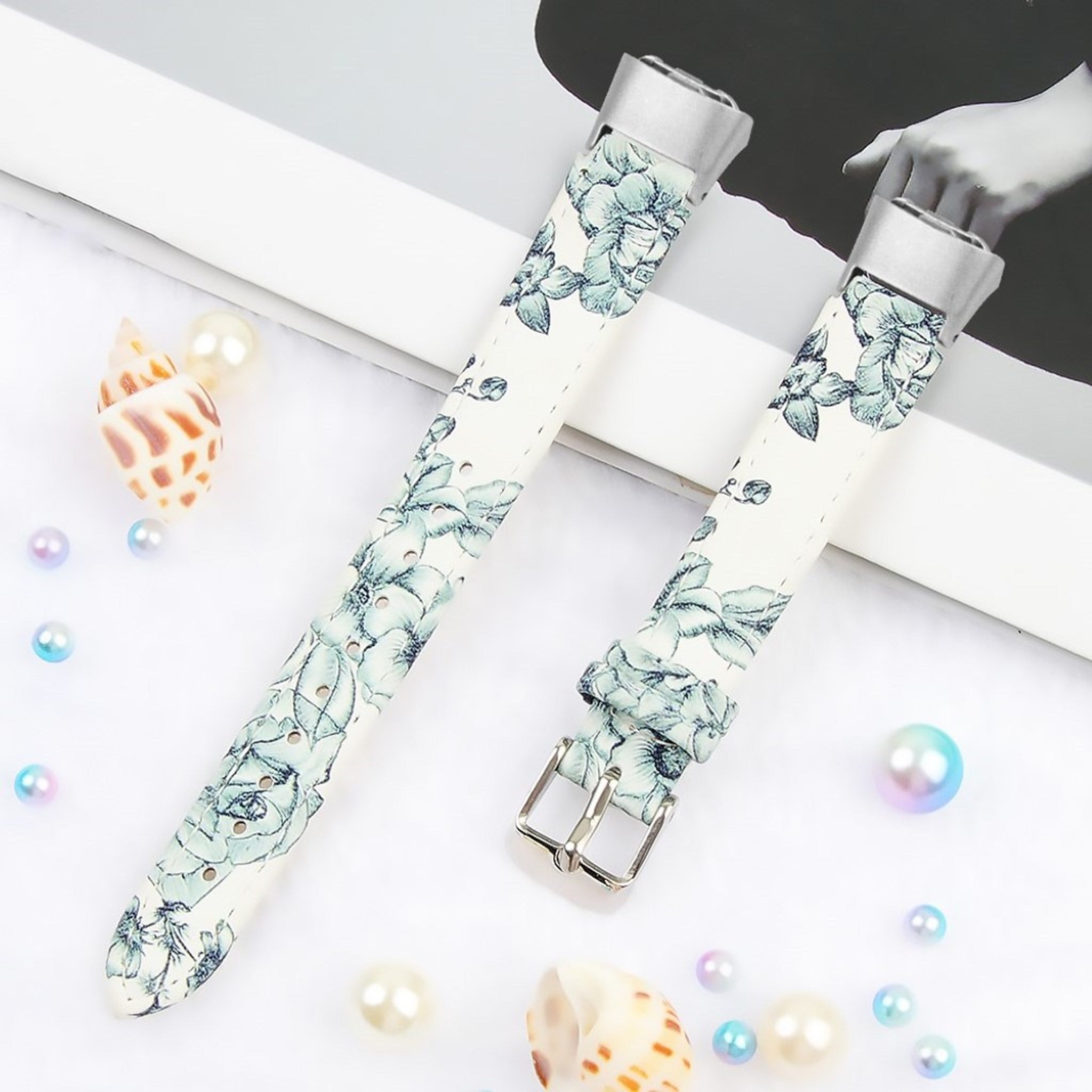 Skórzany pasek do zegarka Samsung Galaxy Fit - Biały / Leaf