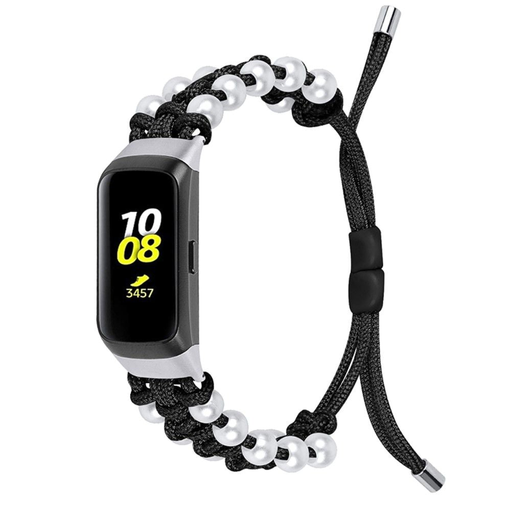 Stylowy nylonowy pasek do zegarka Samsung Galaxy Fit z perłowym dekorem - Czarny