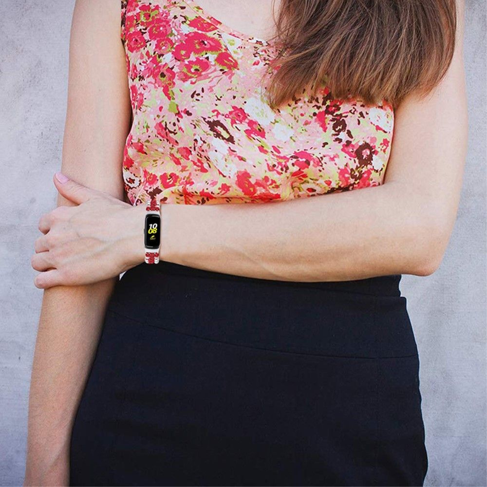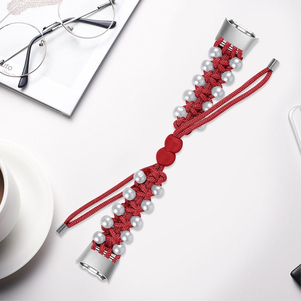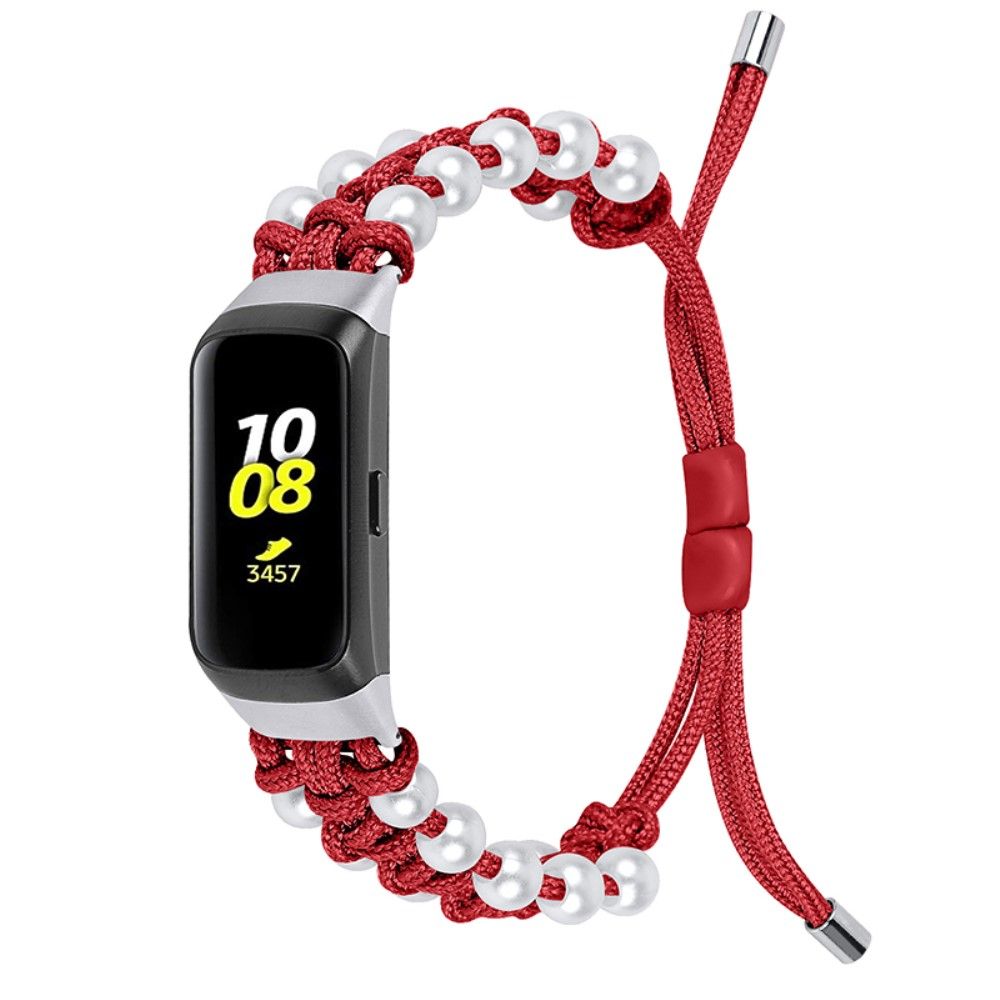 Stylowy nylonowy pasek do zegarka Samsung Galaxy Fit z perłowym dekorem - Czerwony