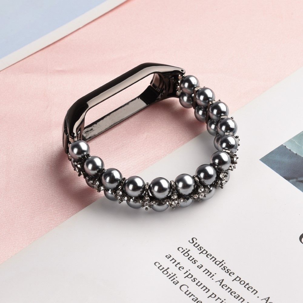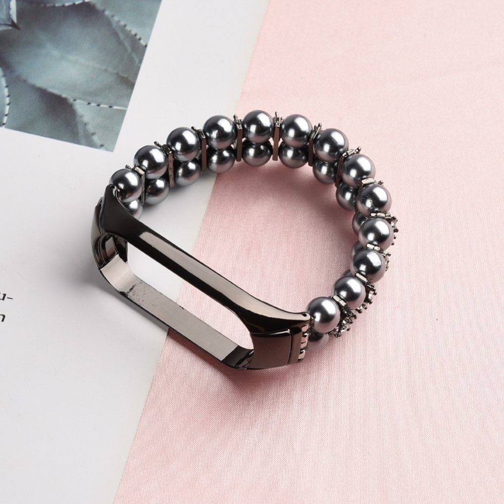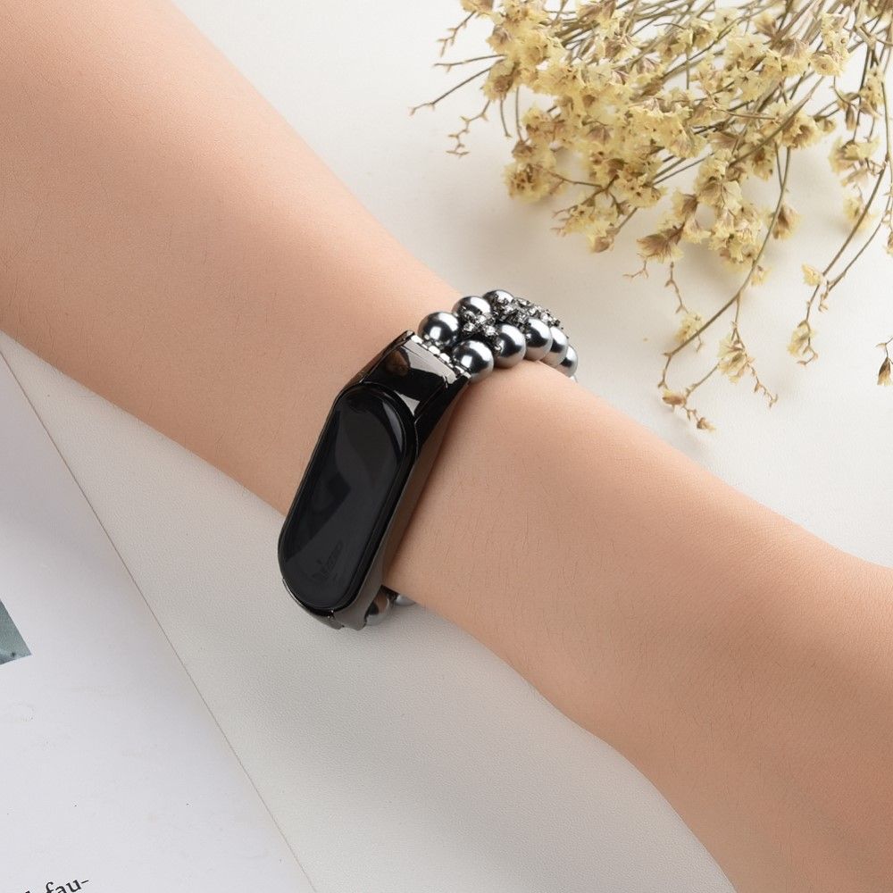 Stylowy pasek do zegarka Xiaomi Mi Smart Band 6 / 5 z kamieniami naturalnymi - Szary