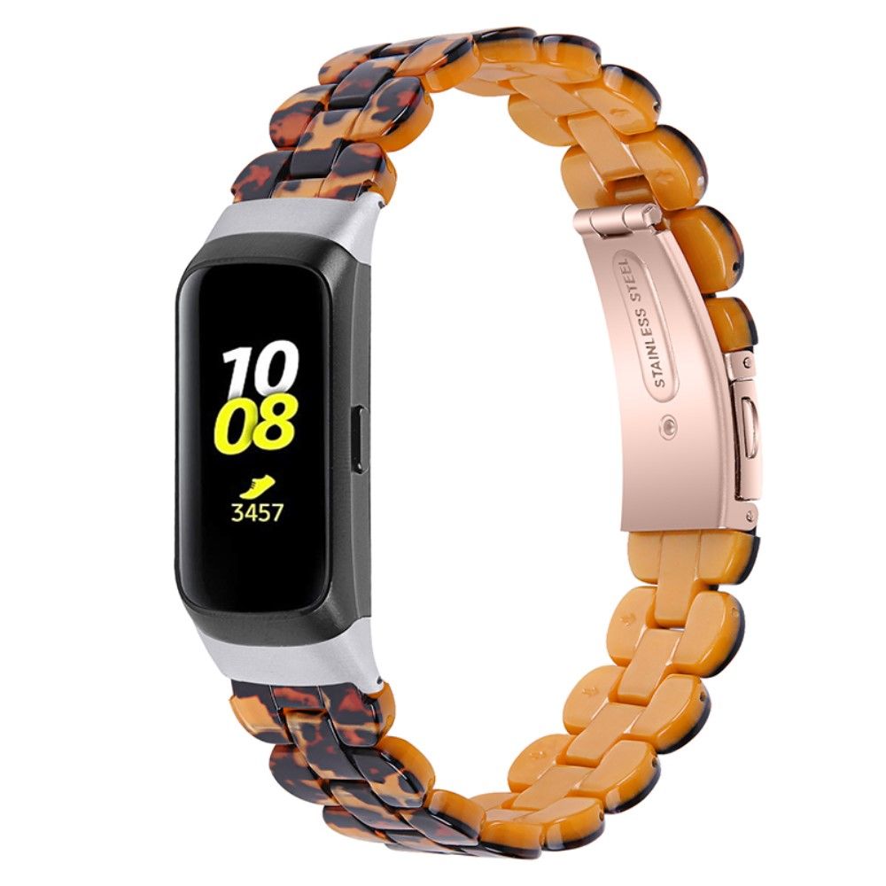 Stylowy żywiczny pasek do zegarka Samsung Galaxy Fit ze stali nierdzewnej - Leopard Print