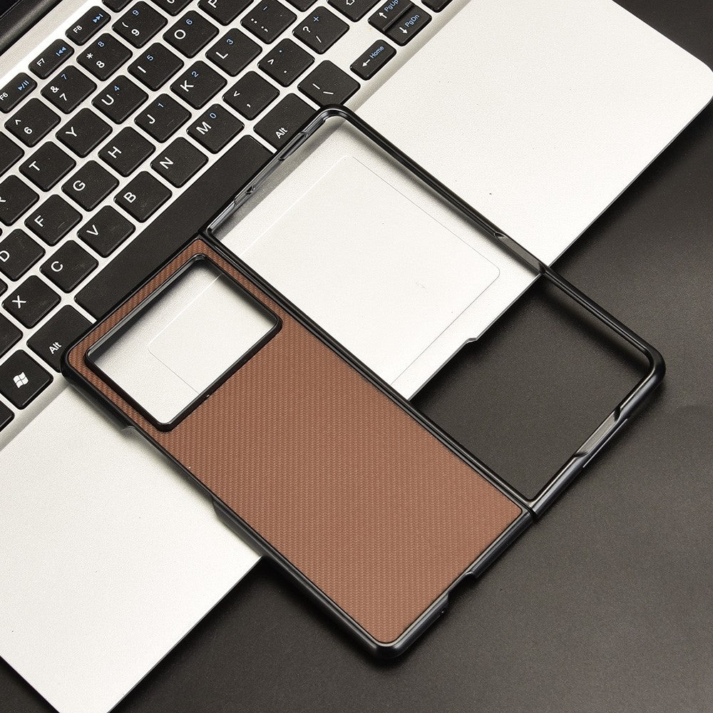 TECNO Phantom V Fold2 Etui z włókna węglowego, odporne na wstrząsy, skórzane etui na telefon - Brązowe