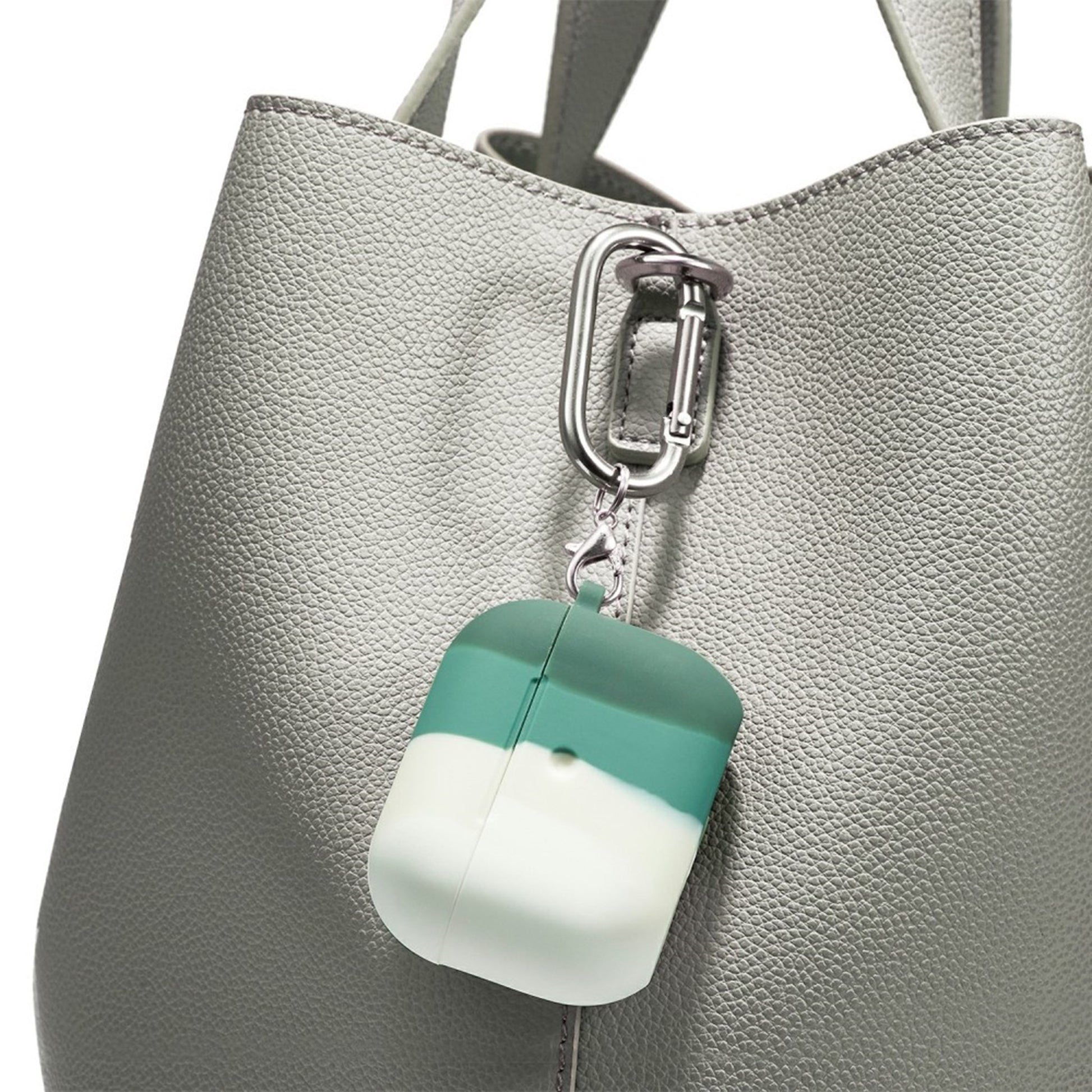 Tęczowe etui silikonowe AirPods 3 z karabińczykiem - Biały / Ciemnozielony